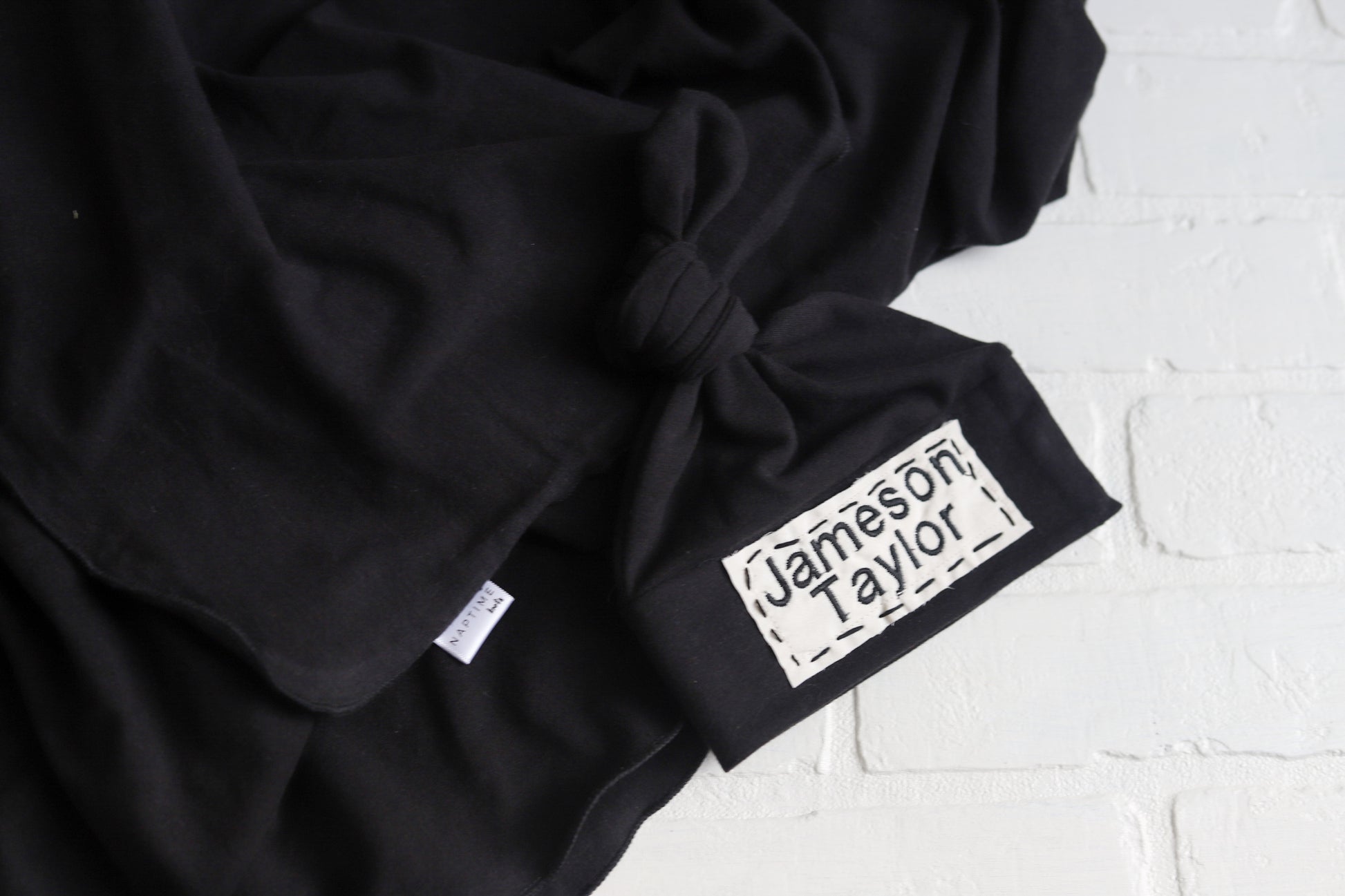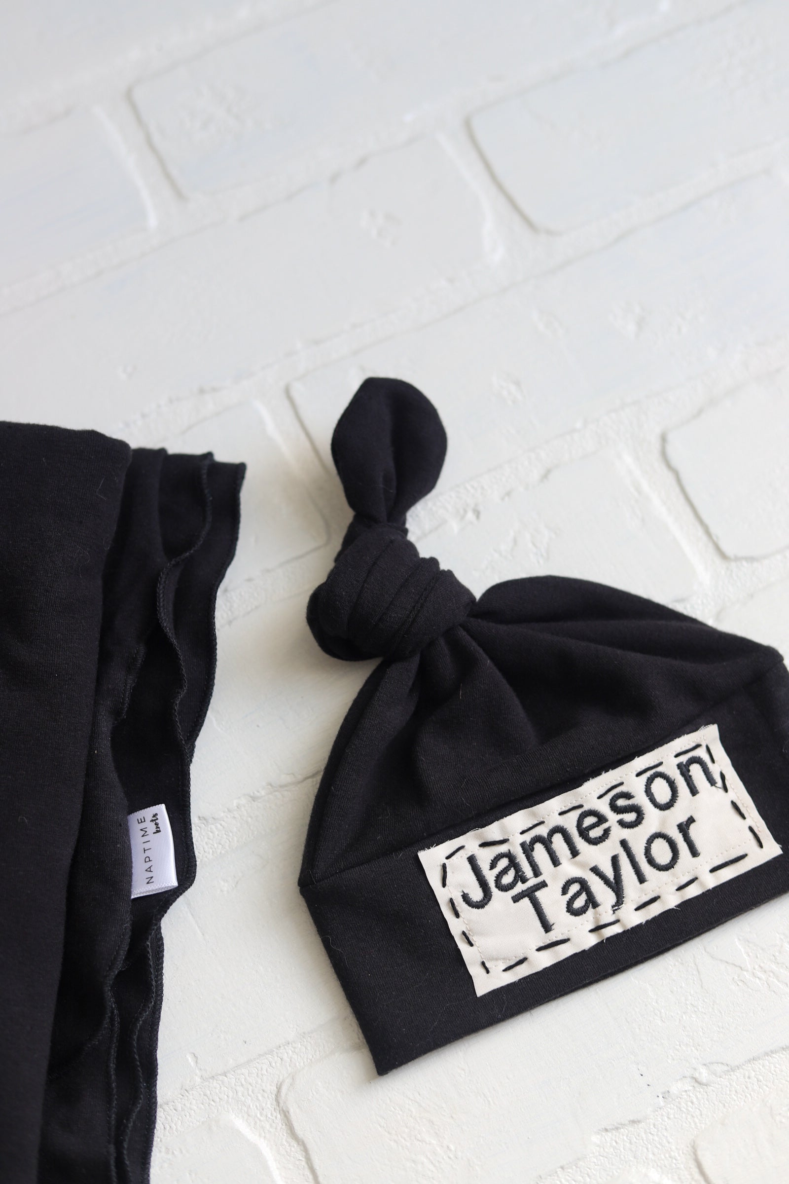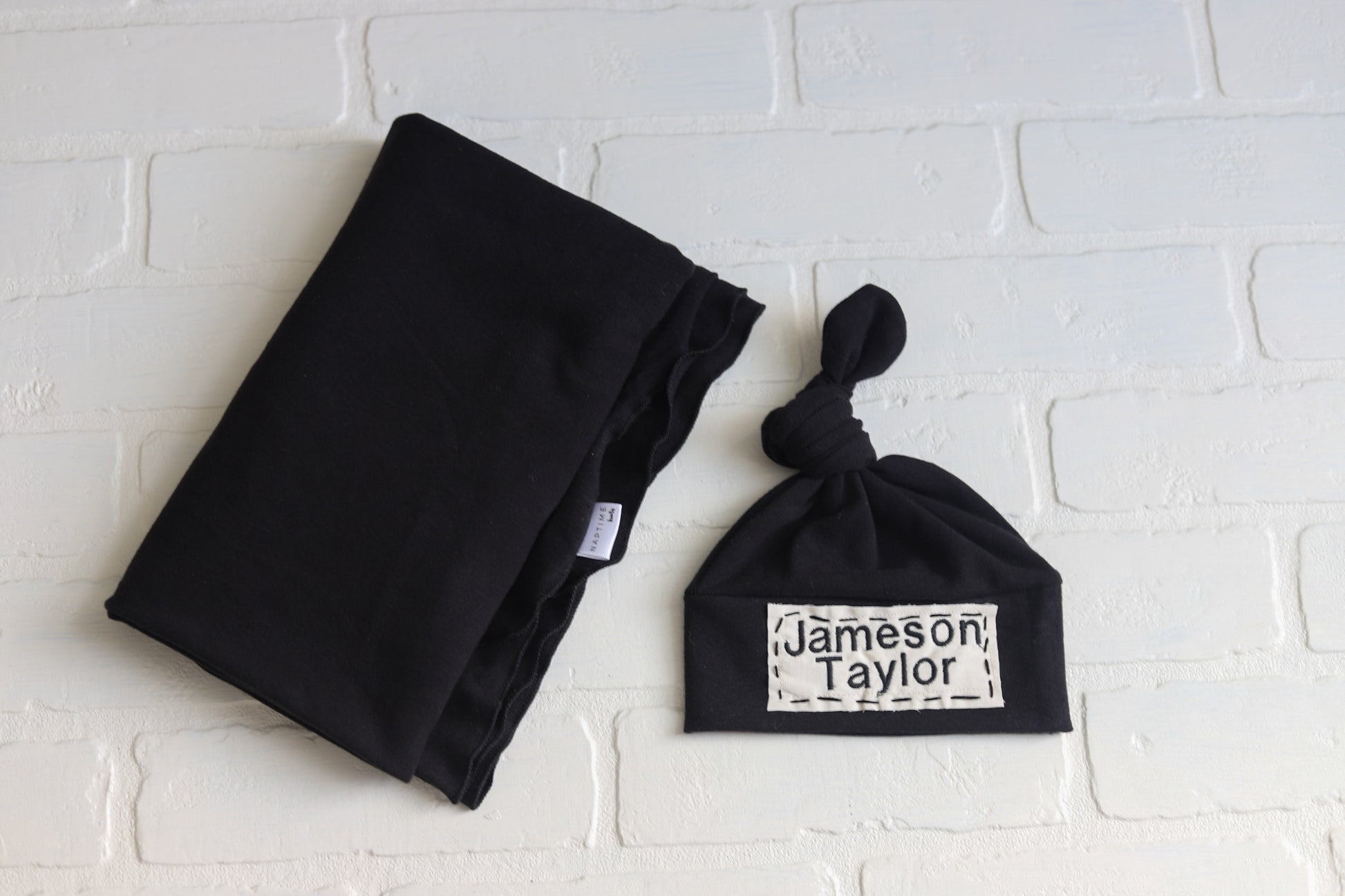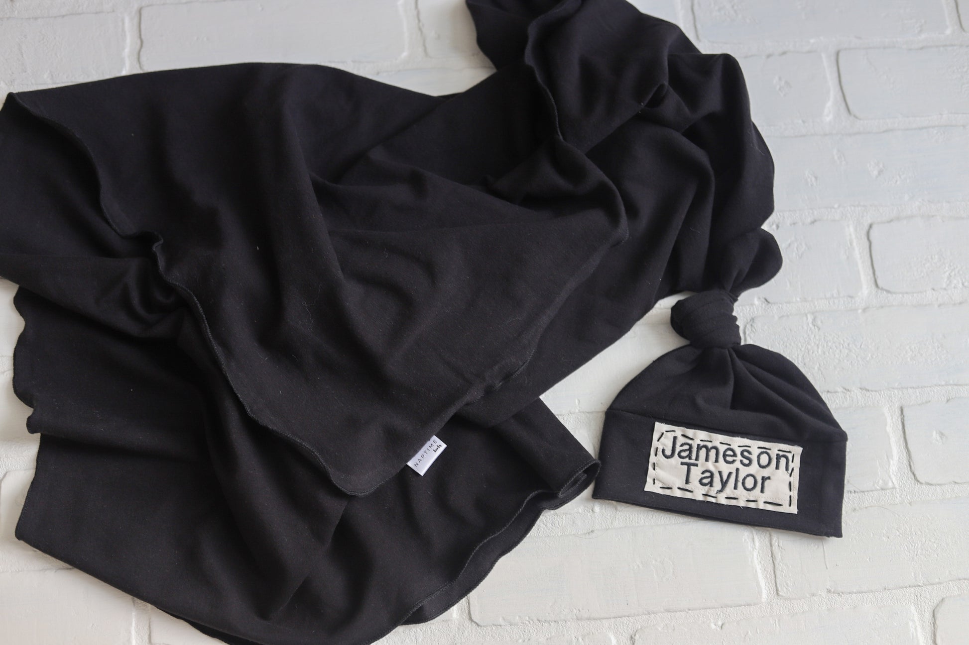Black Swaddle and Newborn Hat | Or PLAIN Top Knot Hat