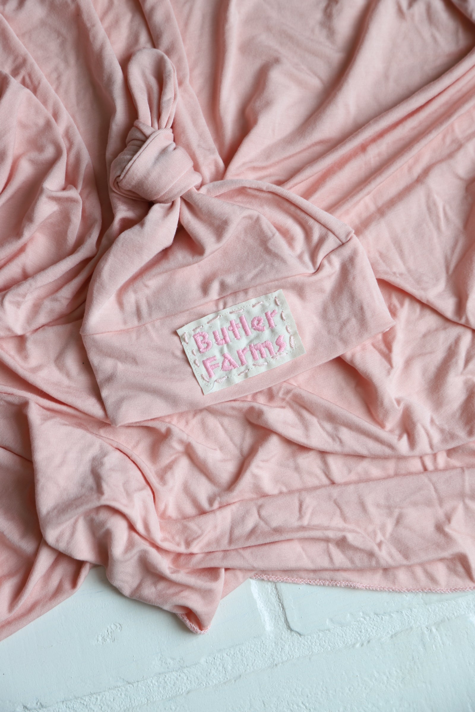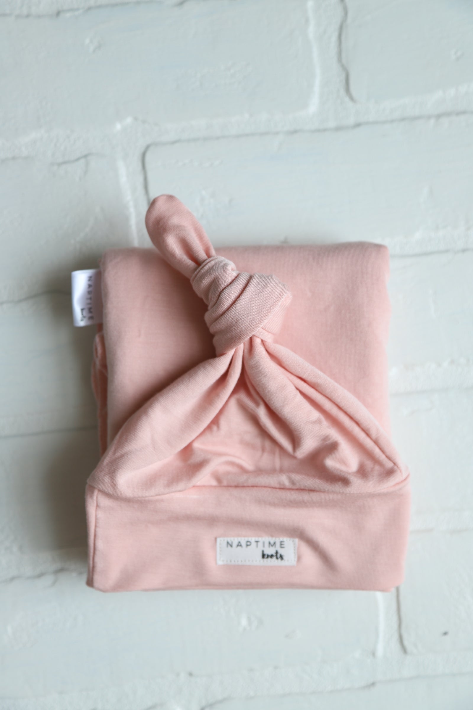 Sets come with a newborn top knot hat and approximate 26”x40” swaddle.