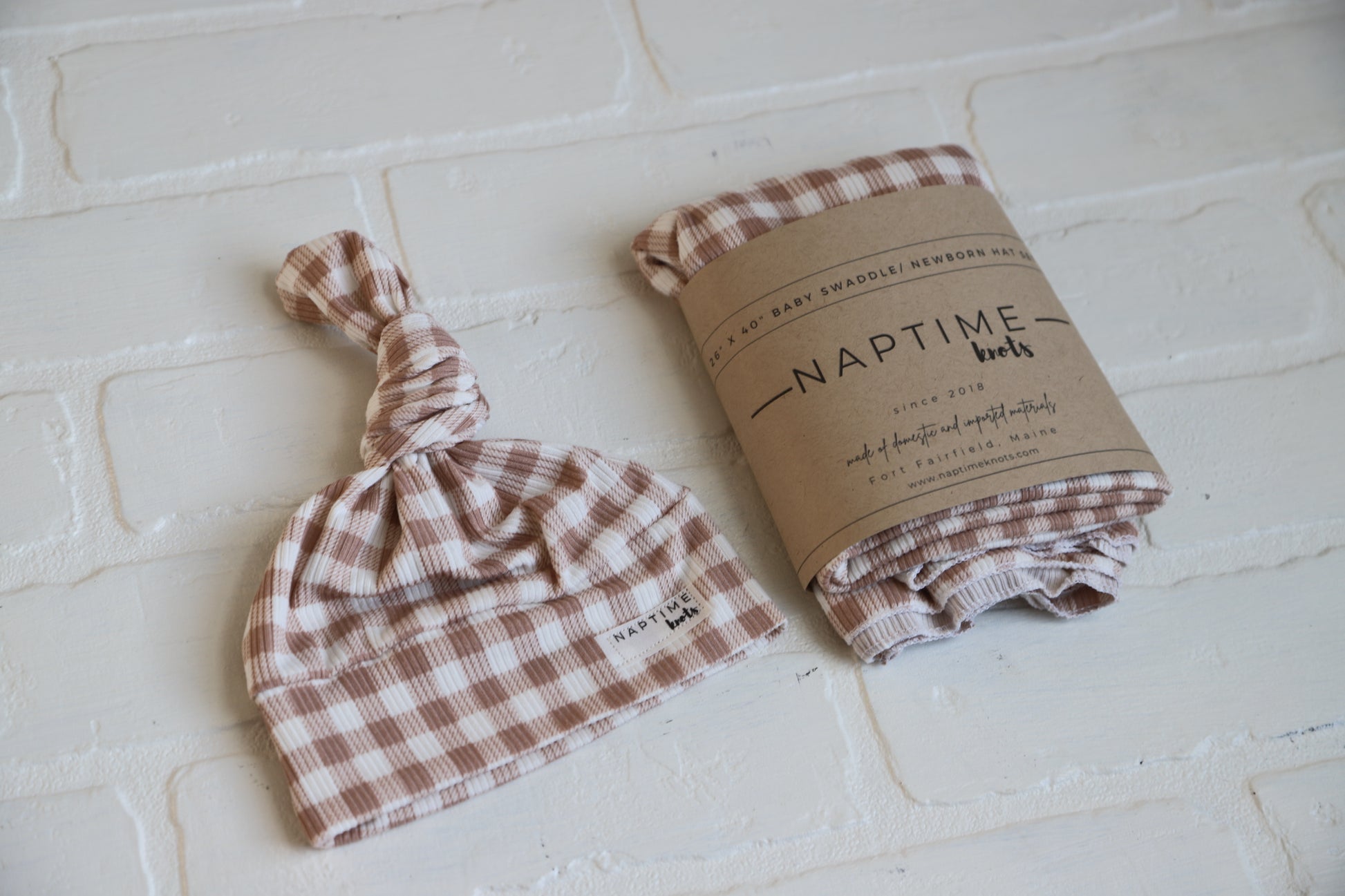 Brown Gingham Hat/Swaddle Set