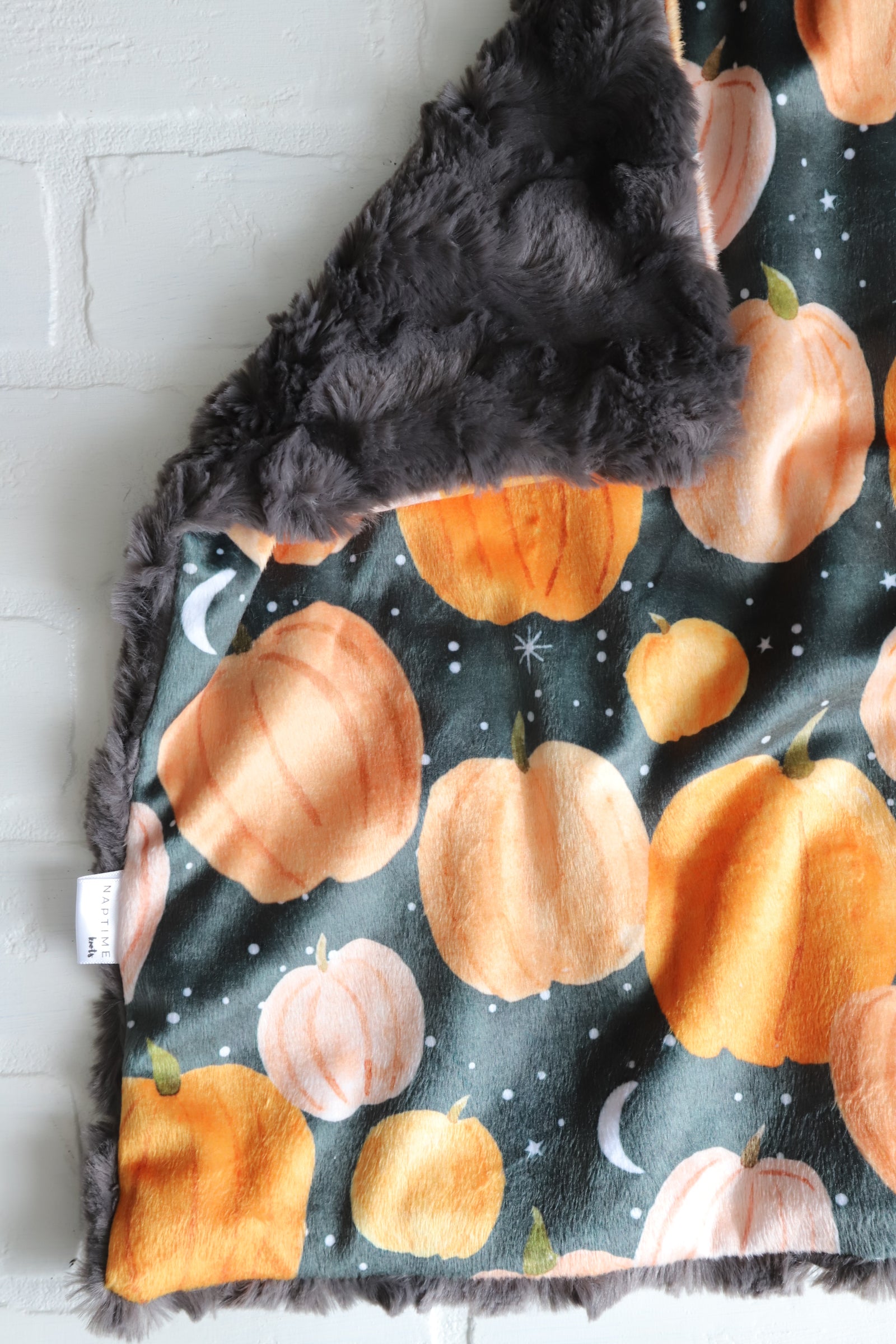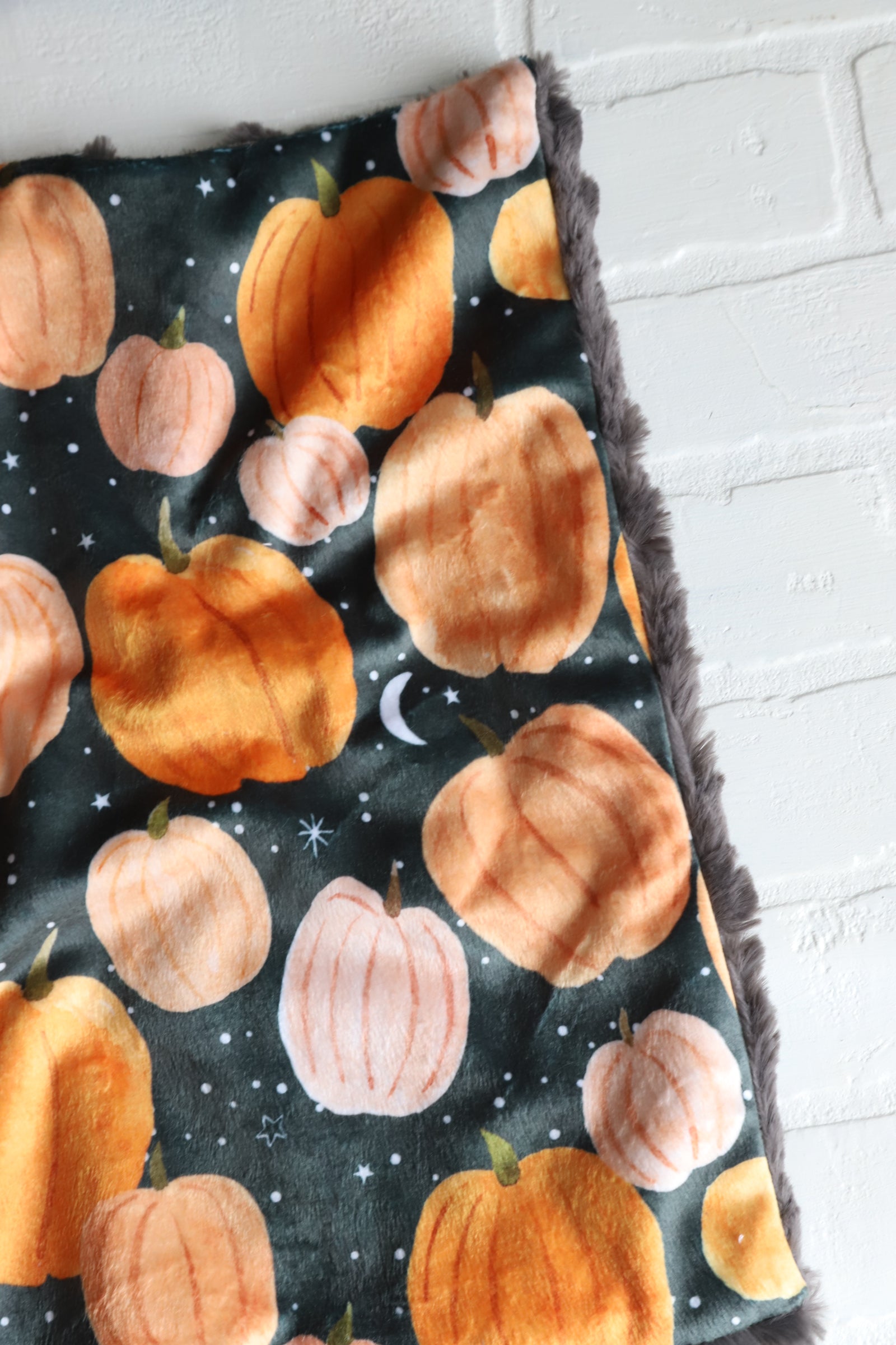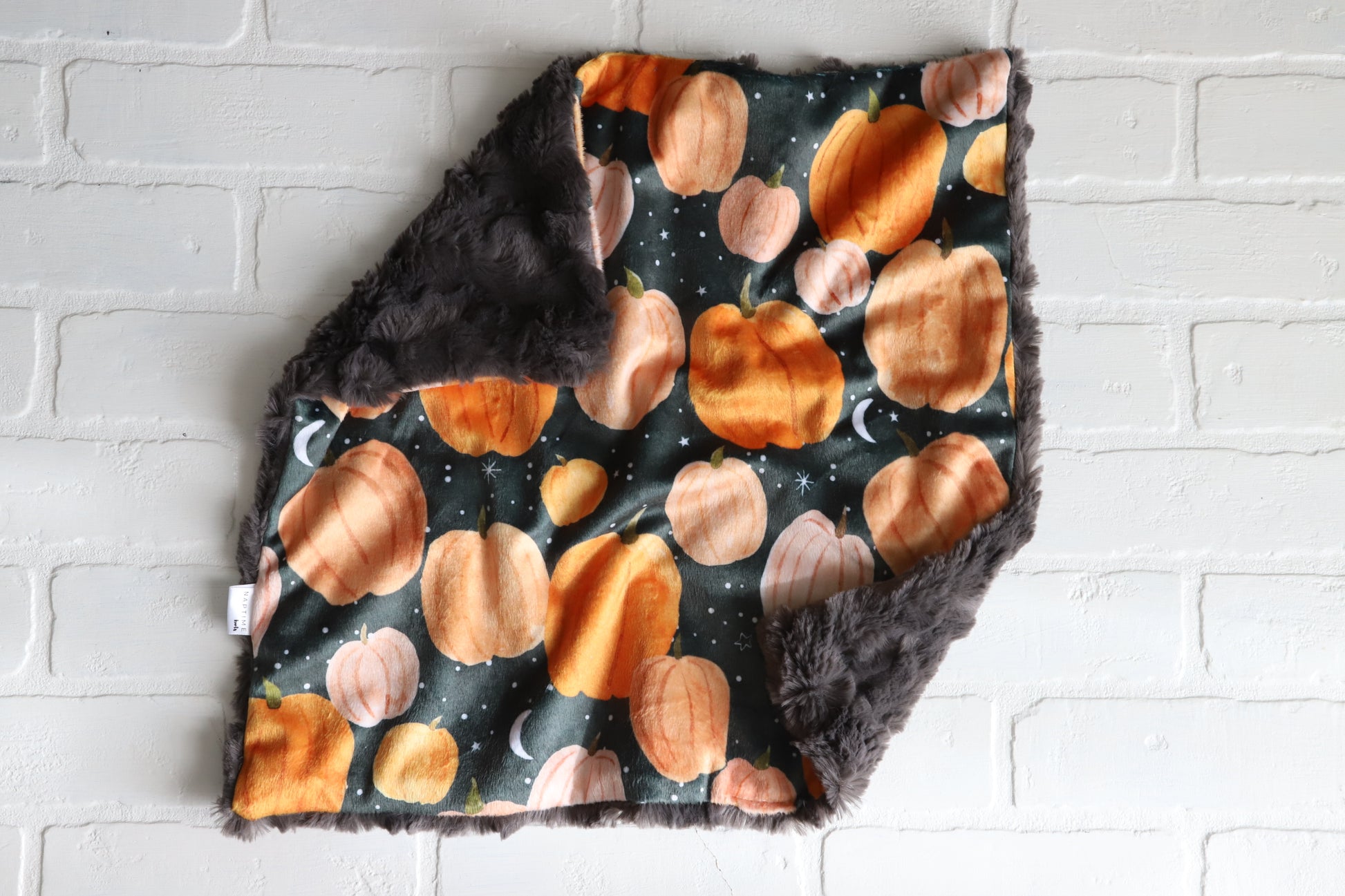 READY TO SHIP lovey featuring orange pumpkins with charcoal background