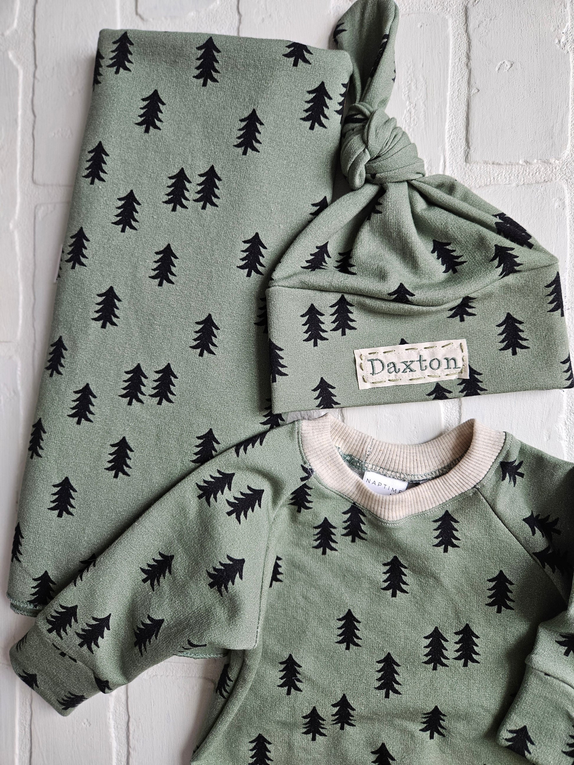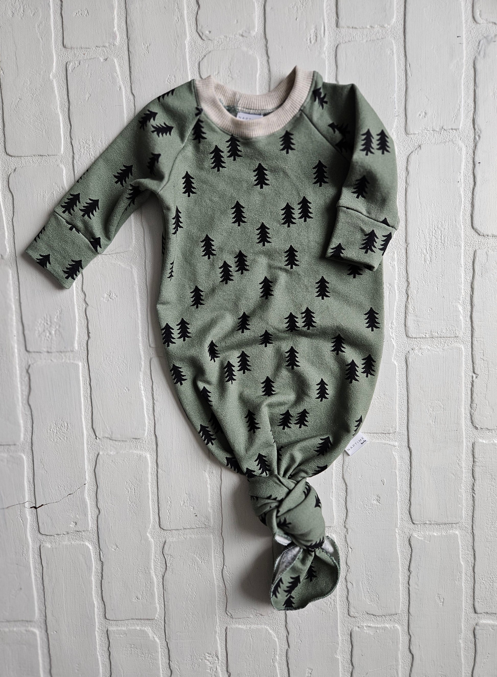 Evergreen Trees 0-3 Month Knotted Gown | Newborn Outfit