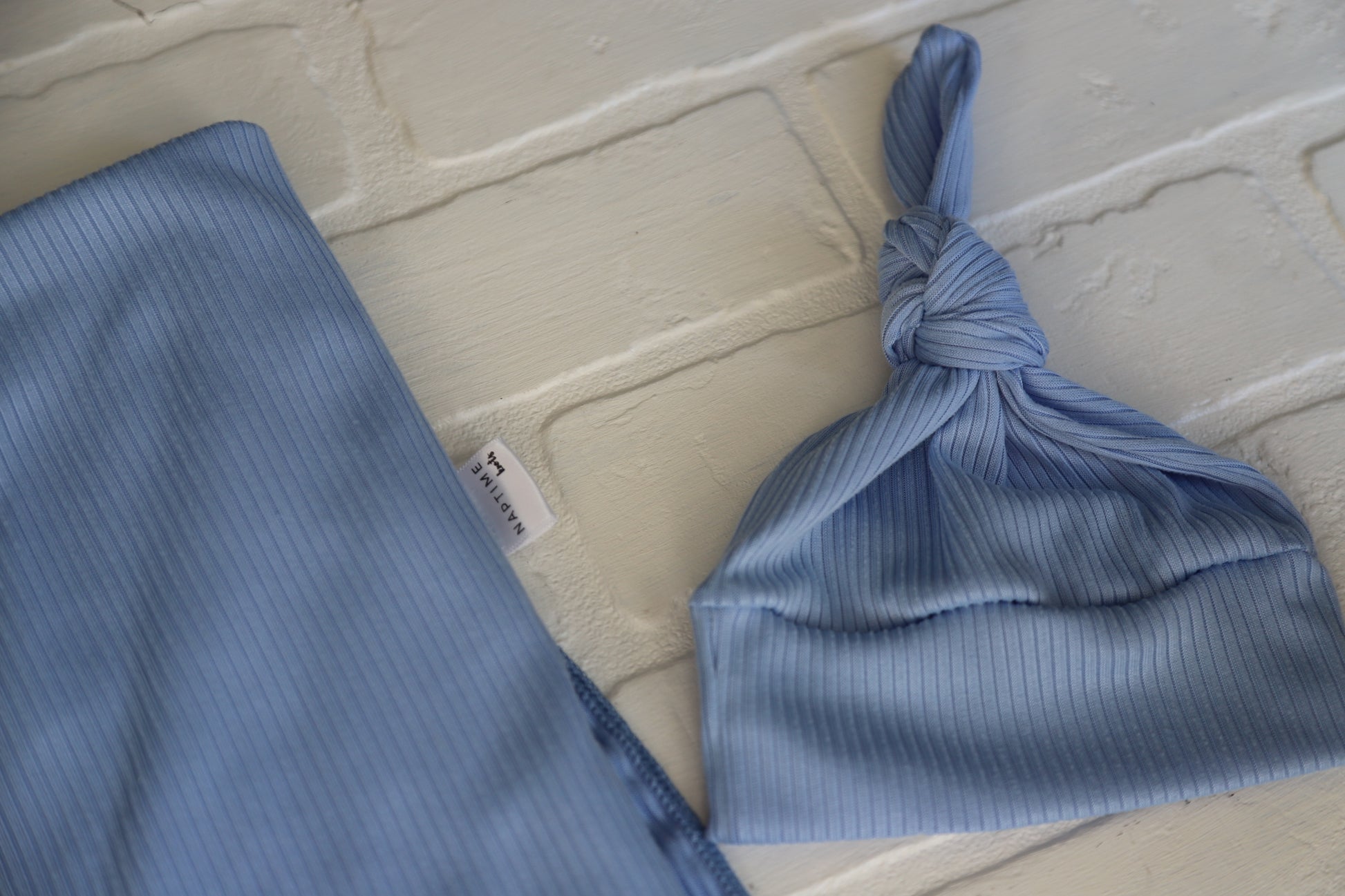 This newborn hat and swaddle set is perfect for the first birth announcement photos or newborn photos.