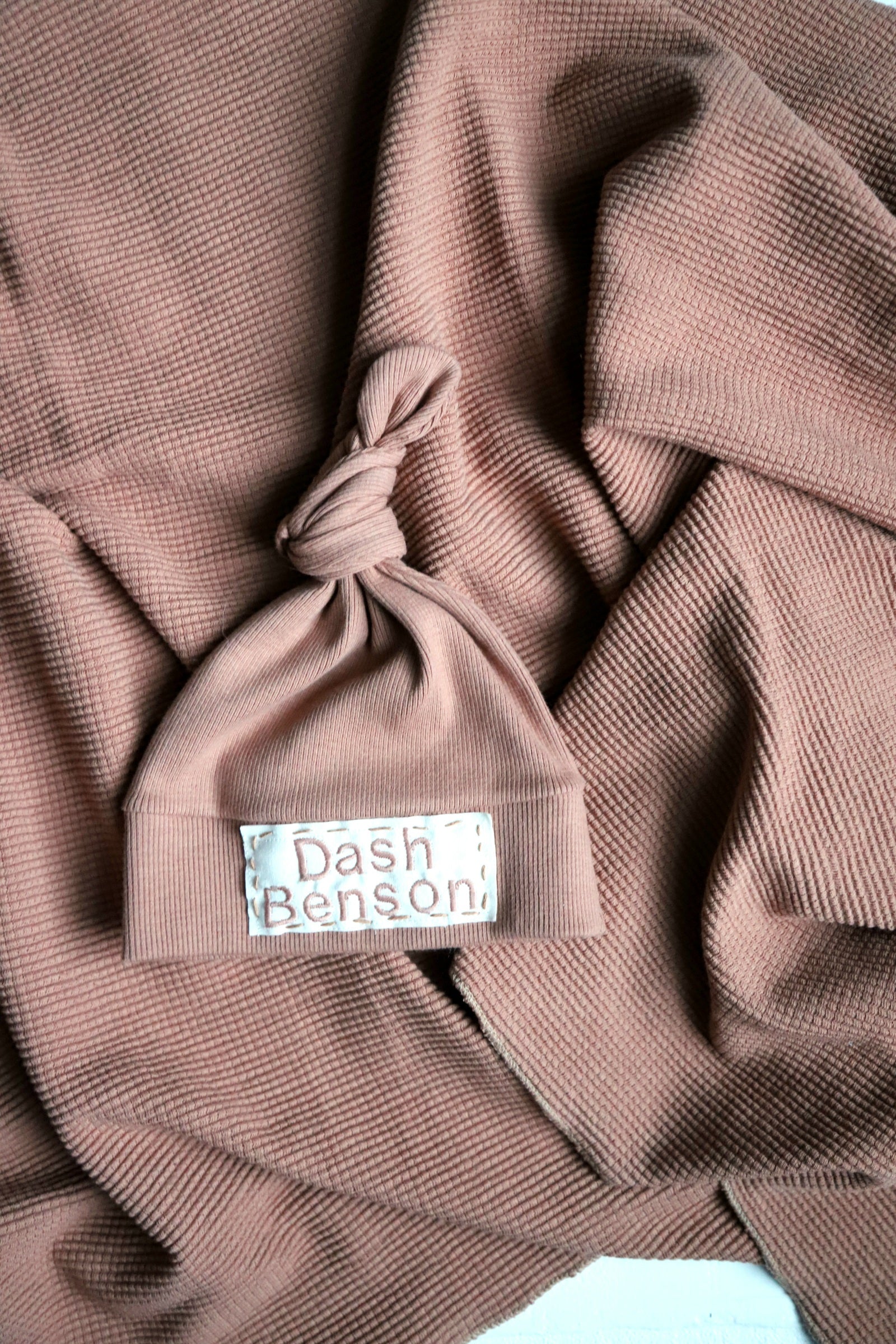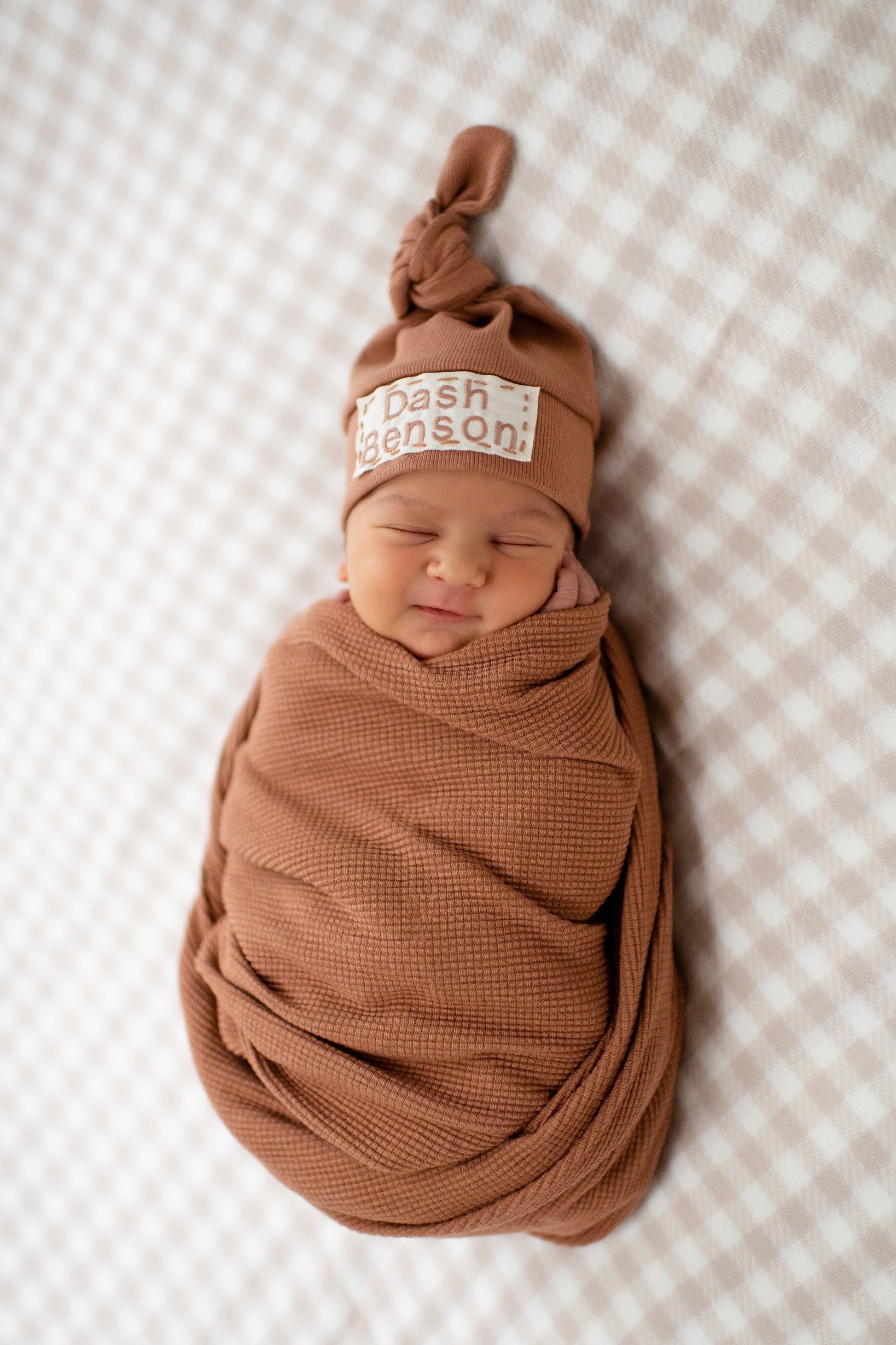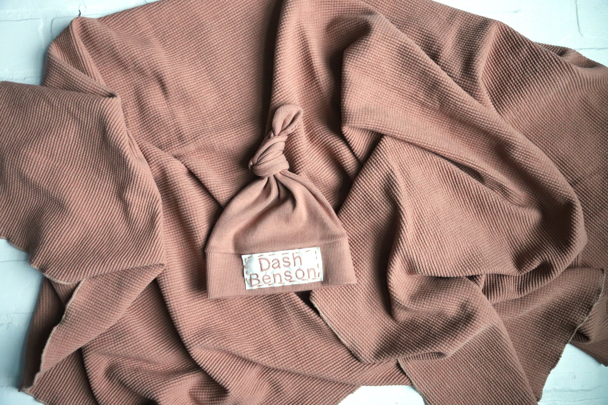 Maple Brown - Organic American Milled Waffle Knit Swaddle and Rib Knit NB Hat
