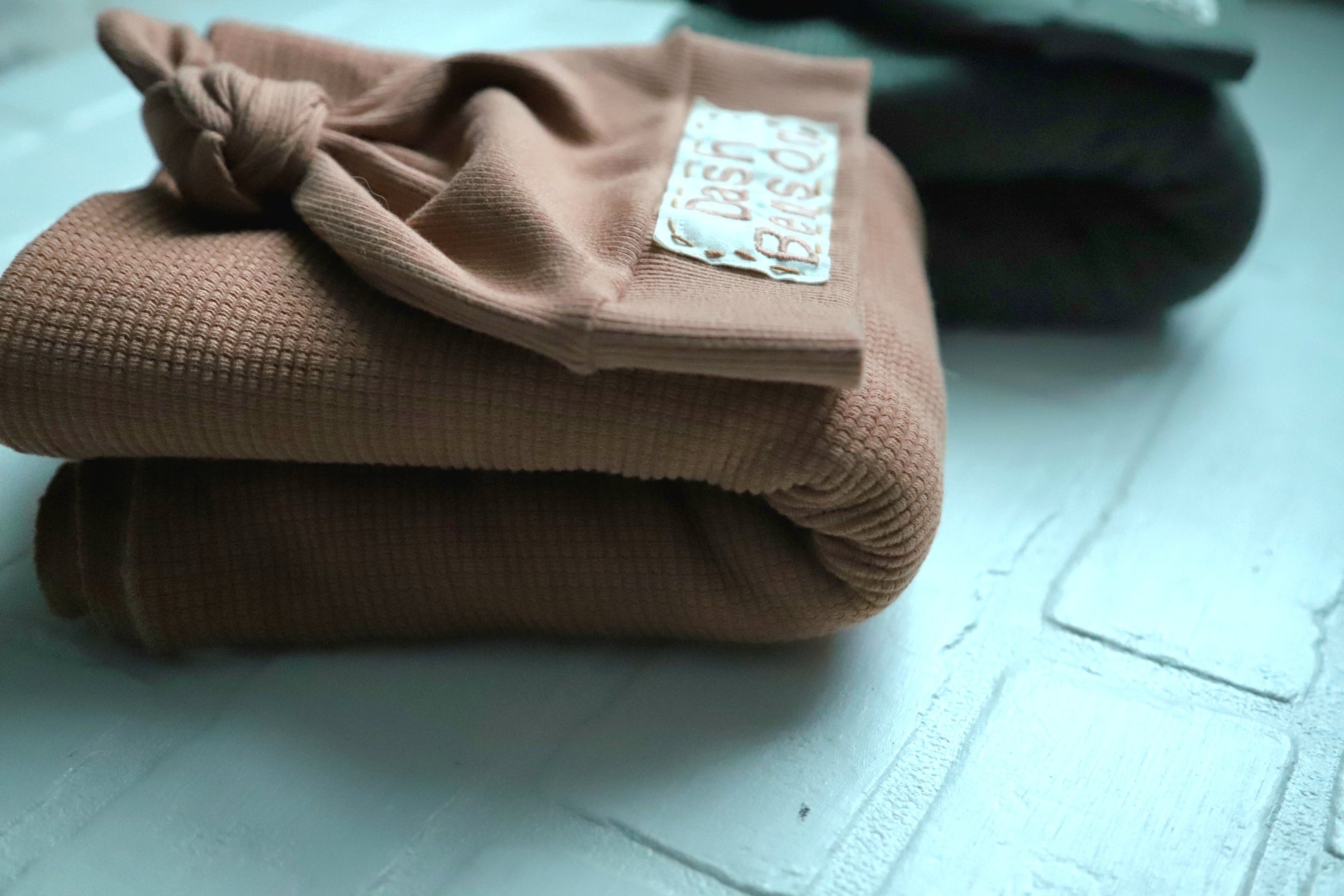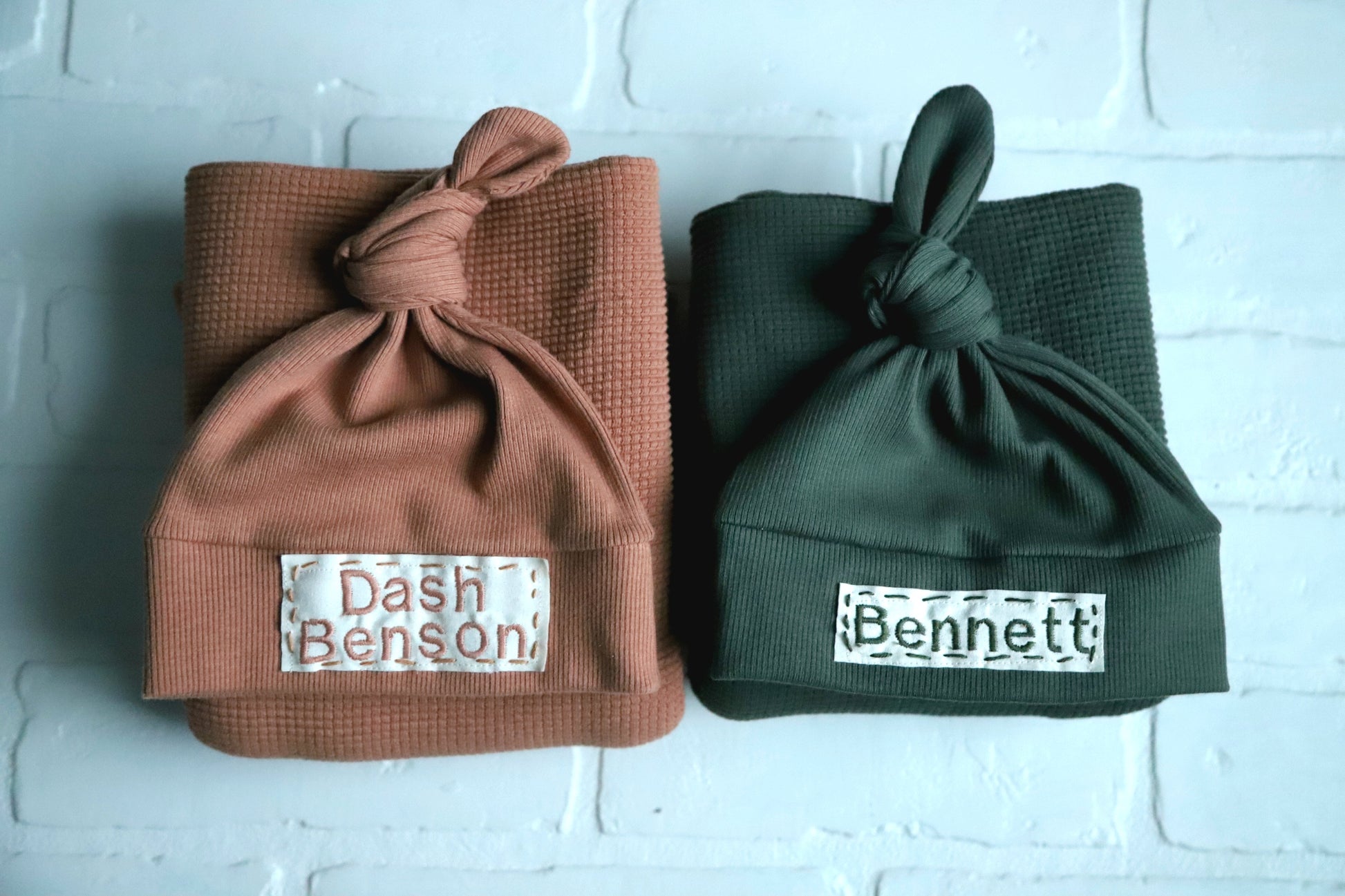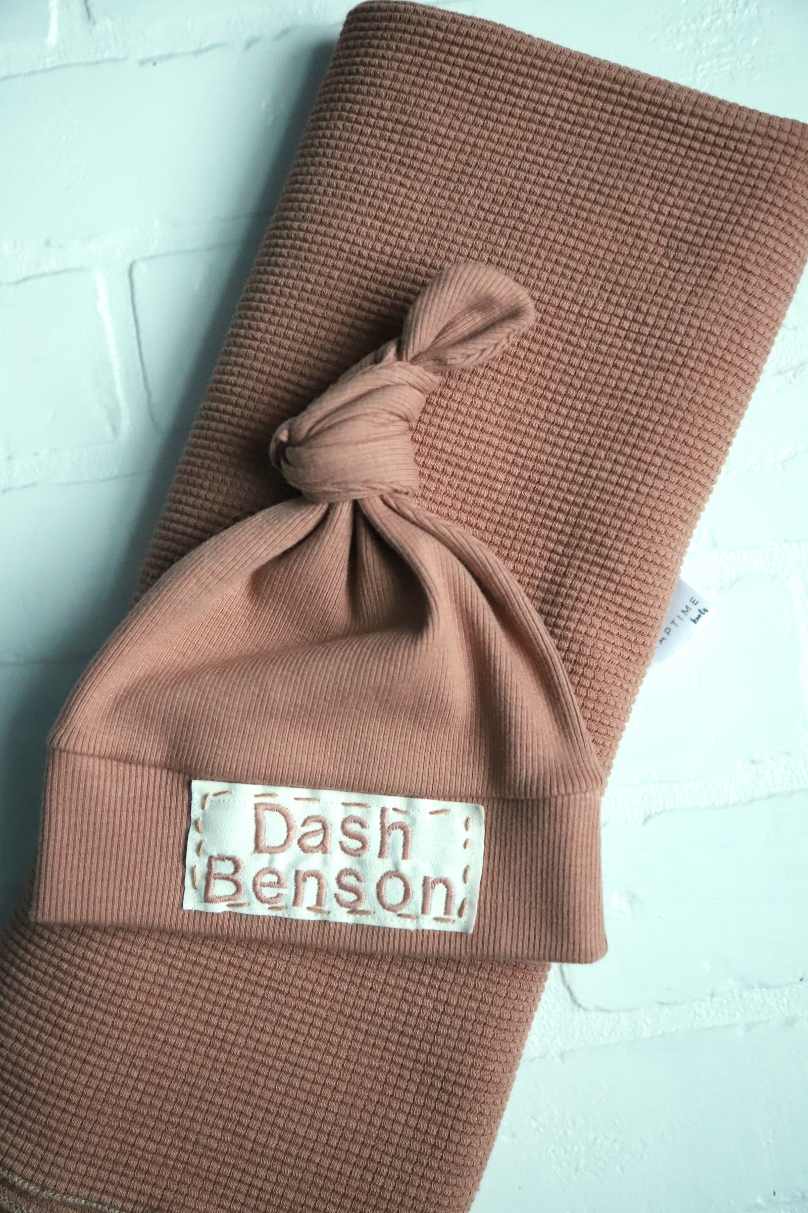 Maple Brown - Organic American Milled Waffle Knit Swaddle and Rib Knit NB Hat