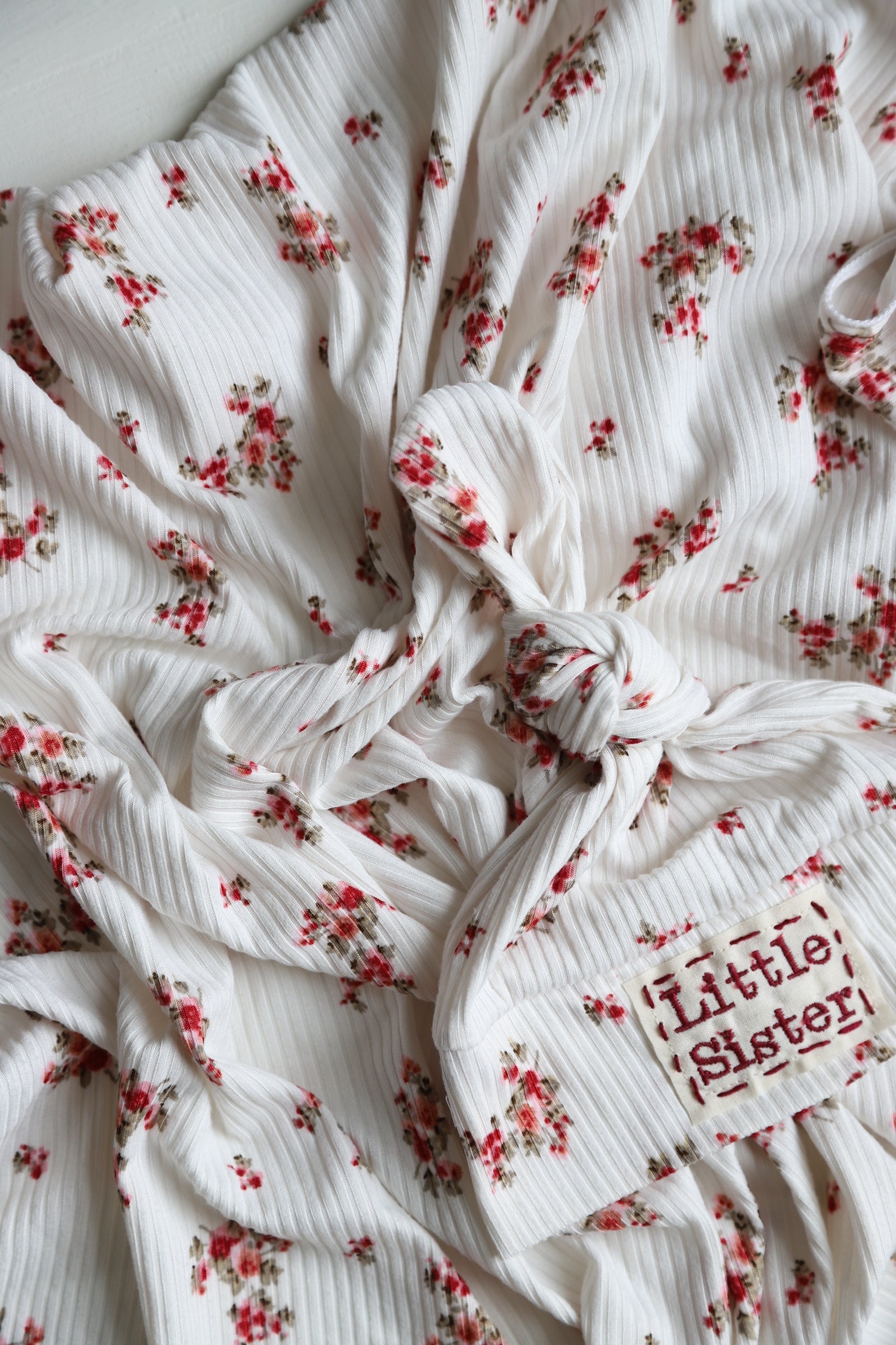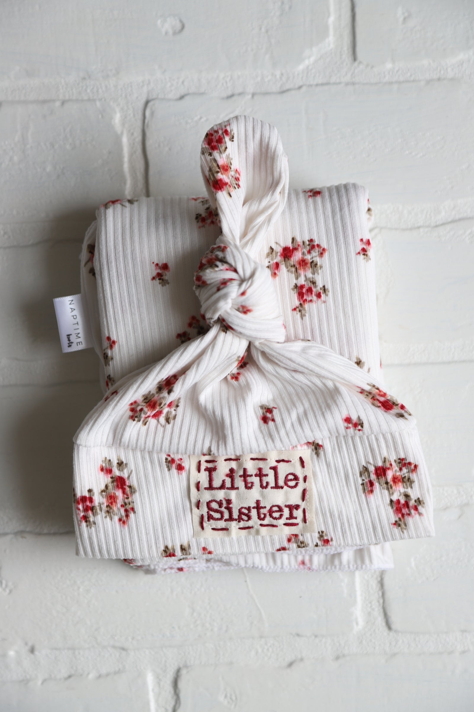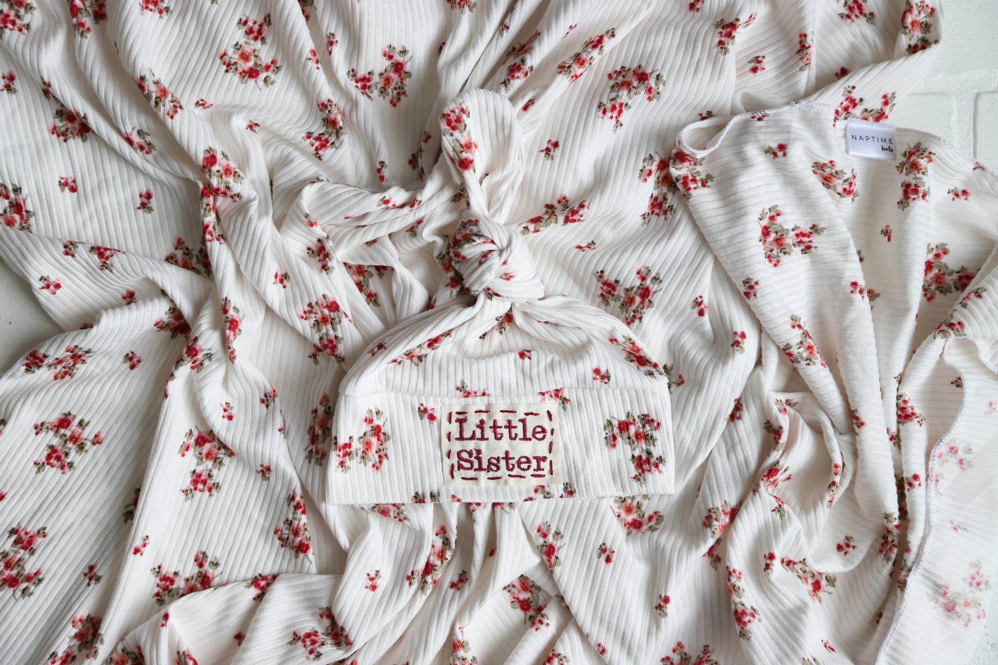 Maroon Floral Ribbed Swaddle and Newborn Hat