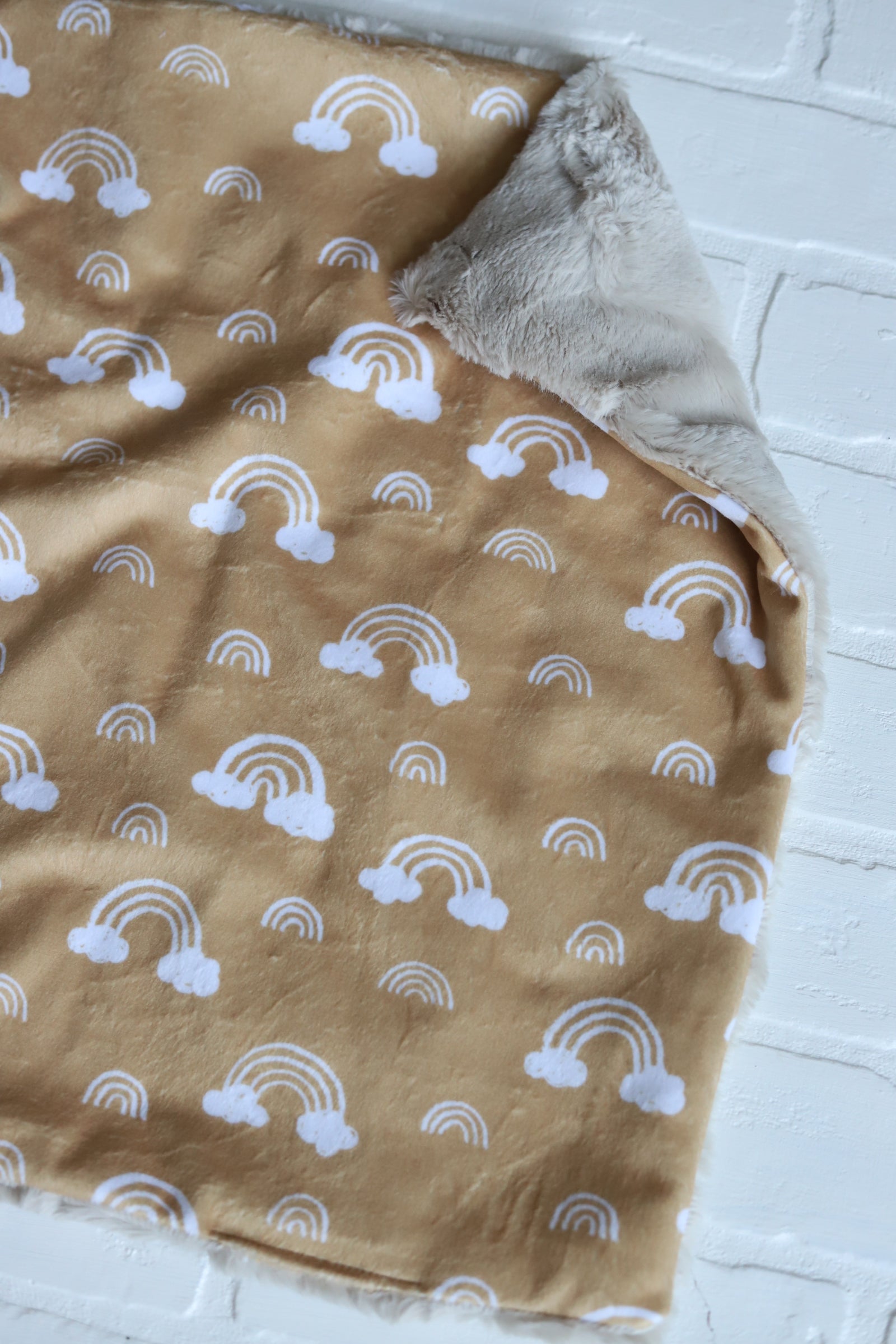 READY TO SHIP lovey featuring danity rainbows and clouds - neutral favorite