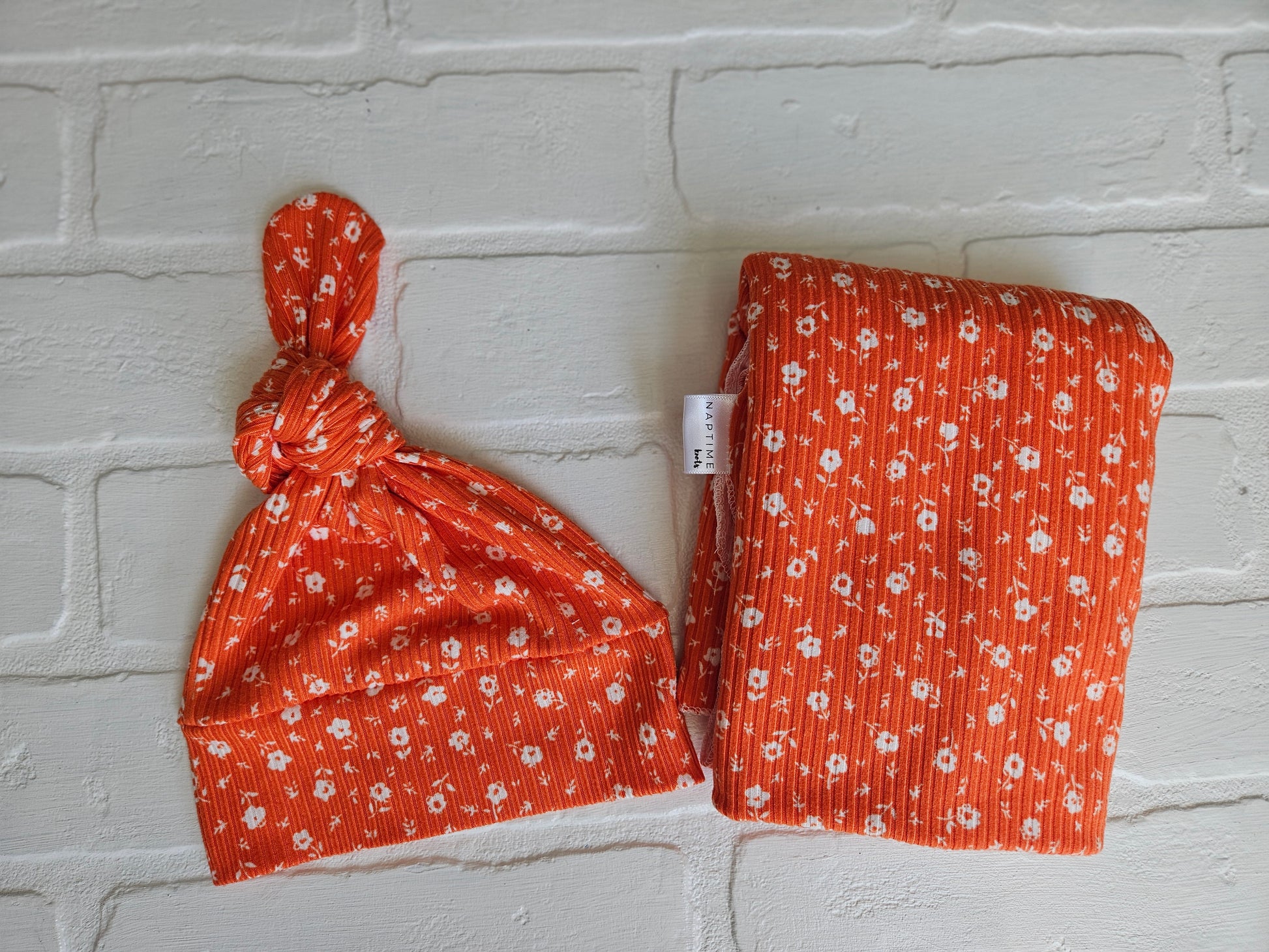 This newborn hat and swaddle set is perfect for the first birth announcement photos or newborn photos.