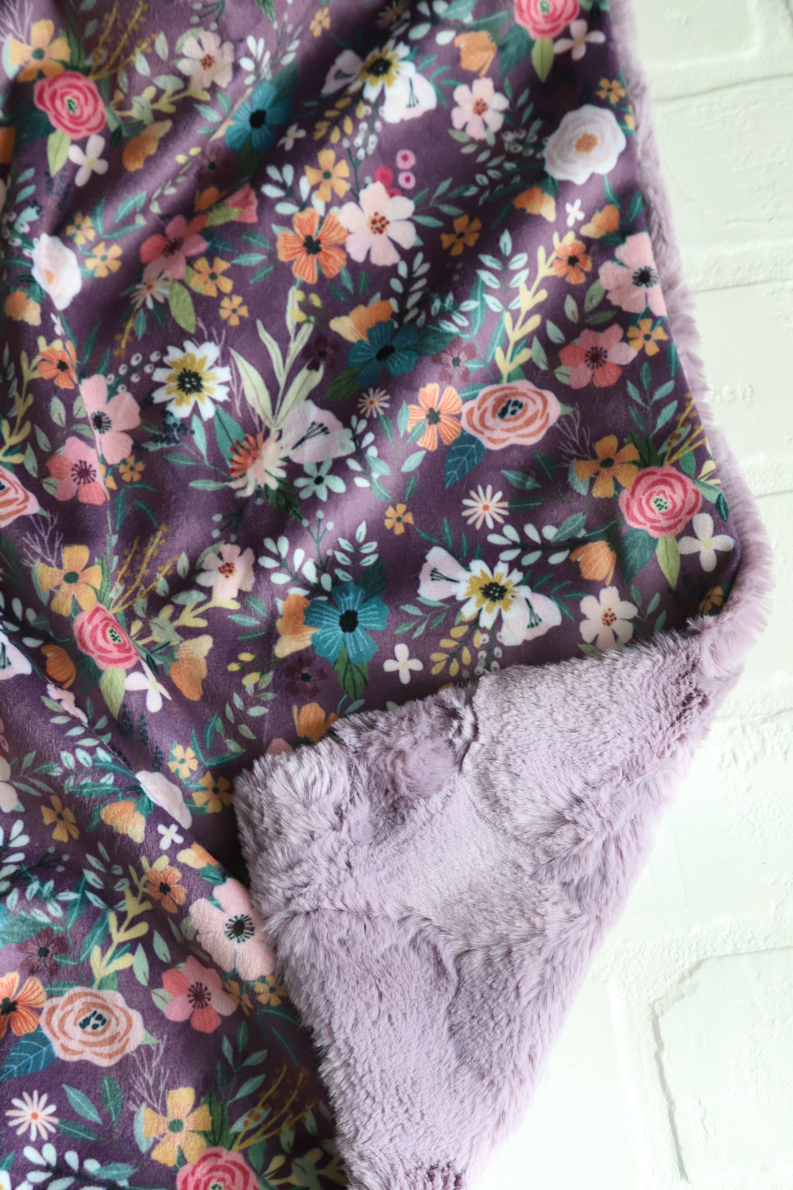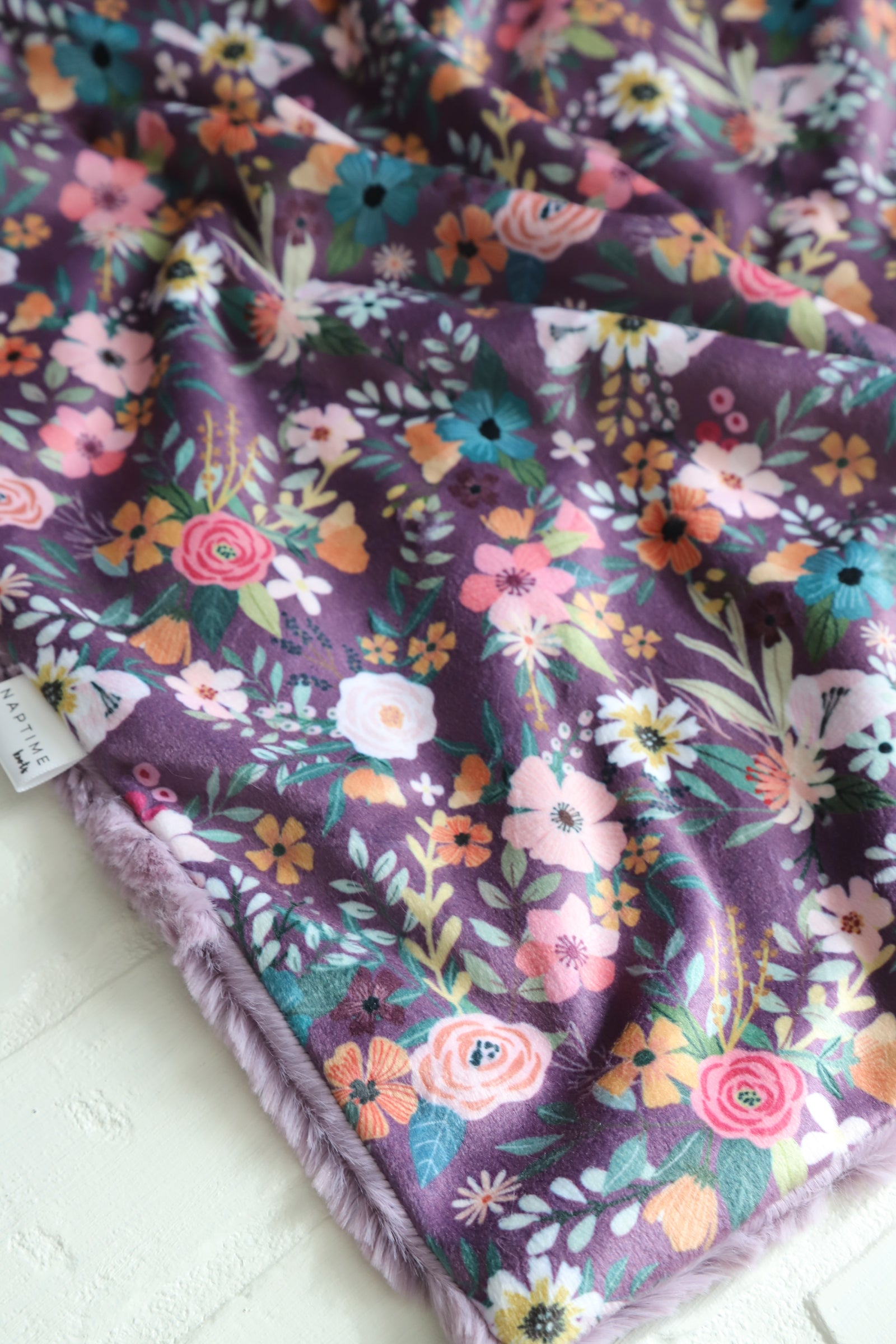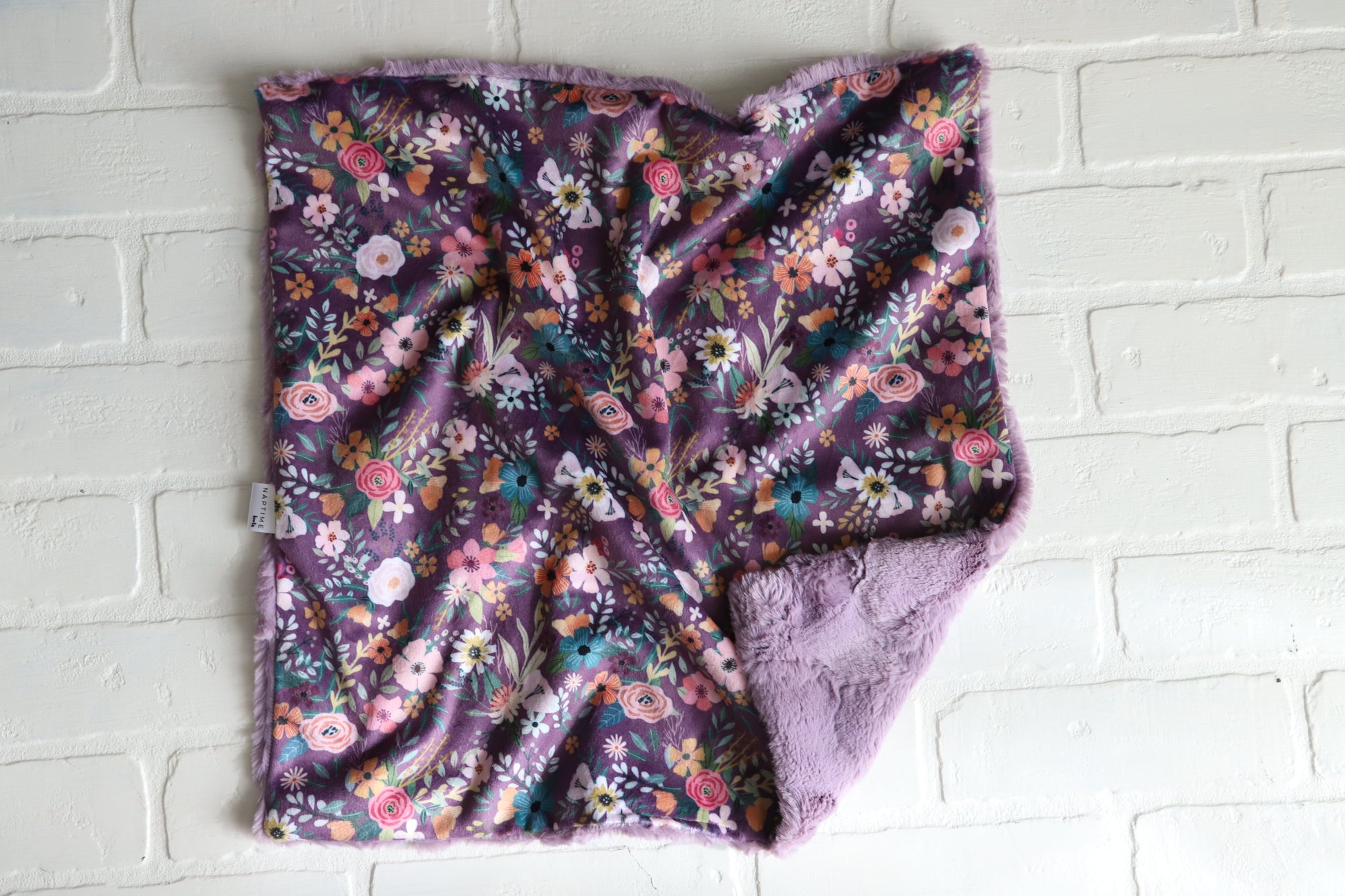 READY TO SHIP lovey featuring a purple background with dainty flowers