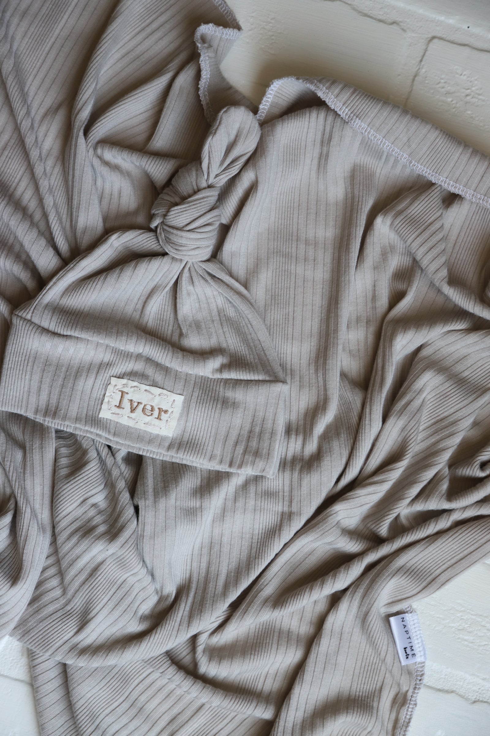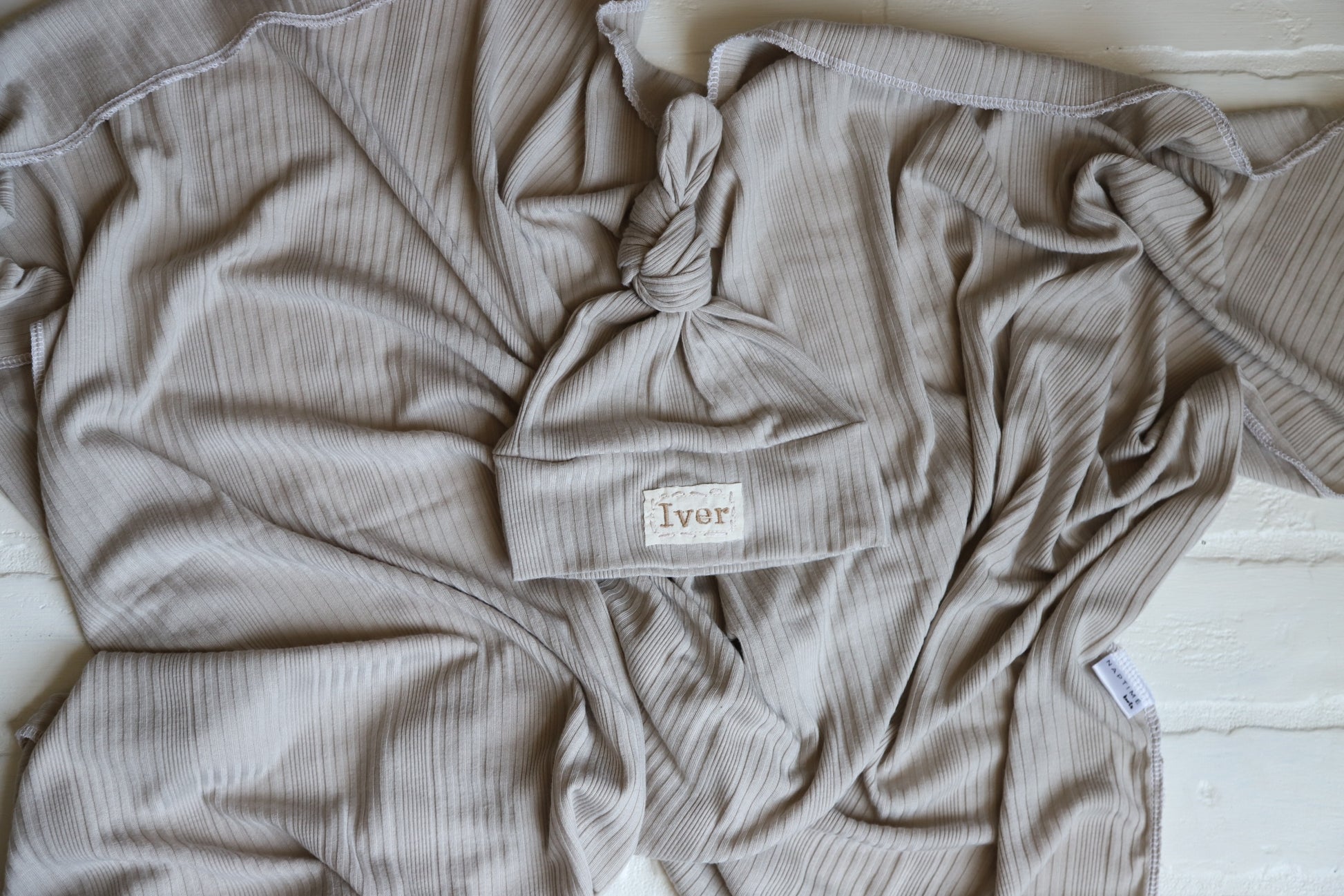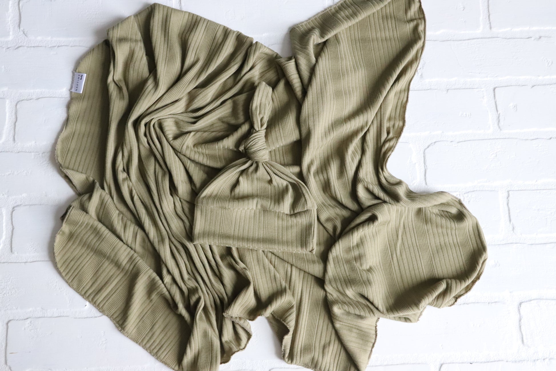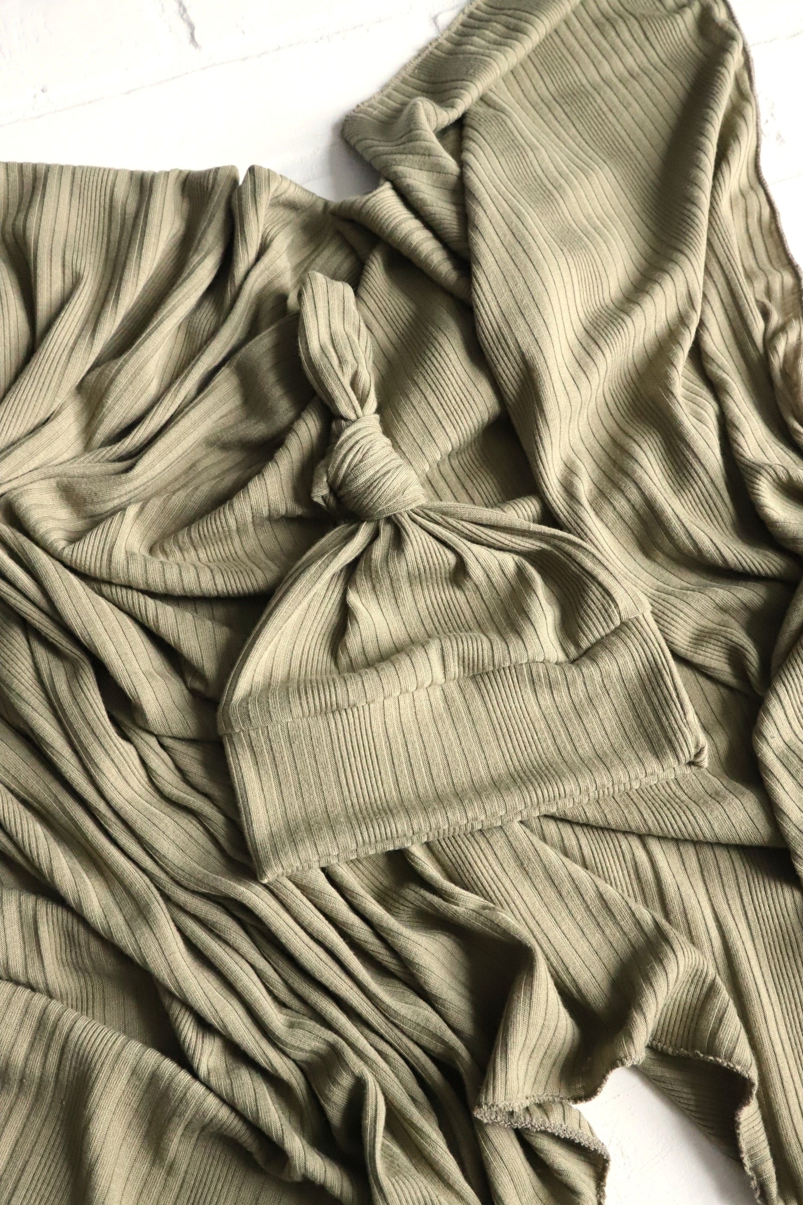 Ribbed Swaddle and Newborn Hat | Taupe or Olive Green