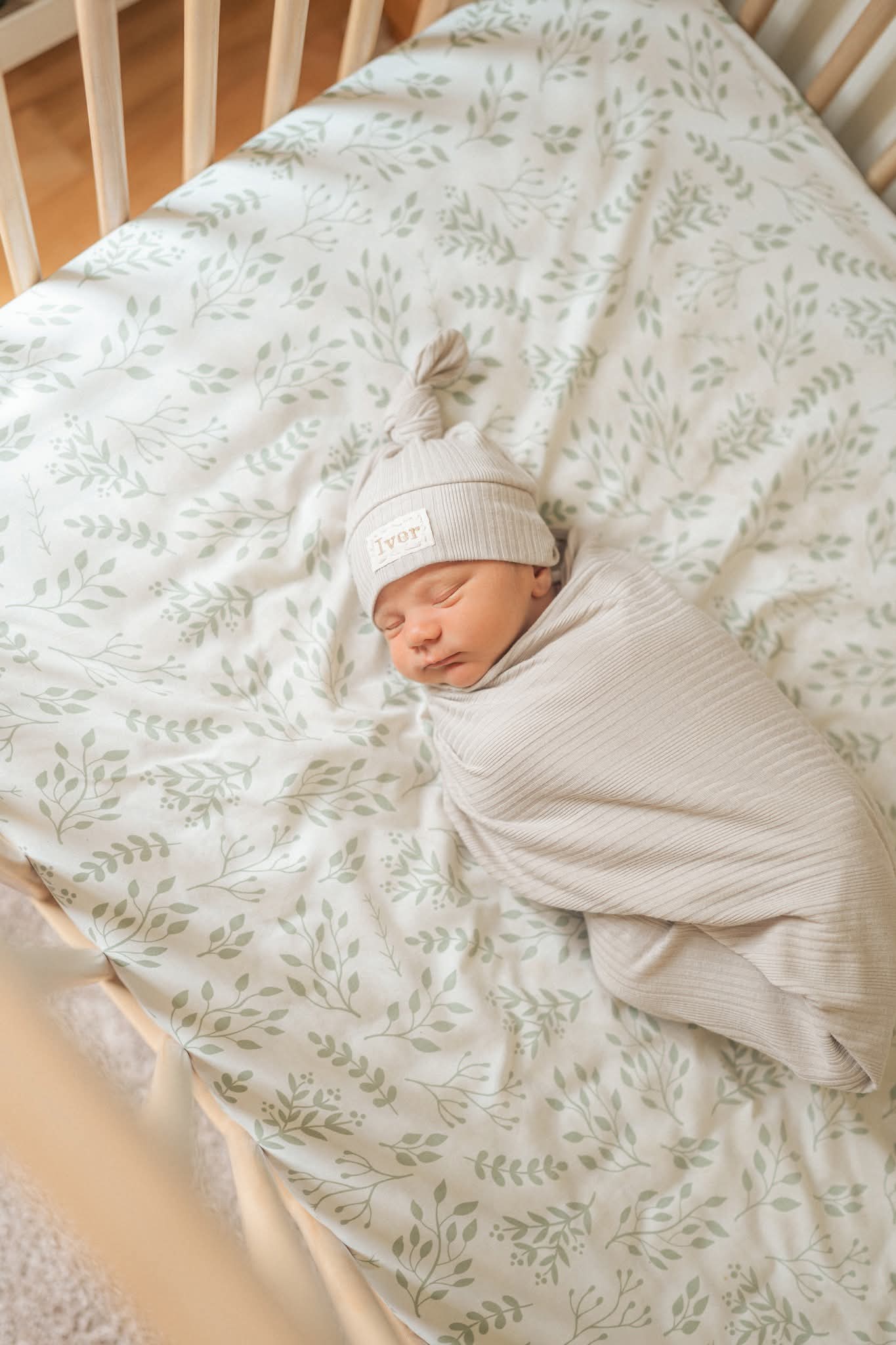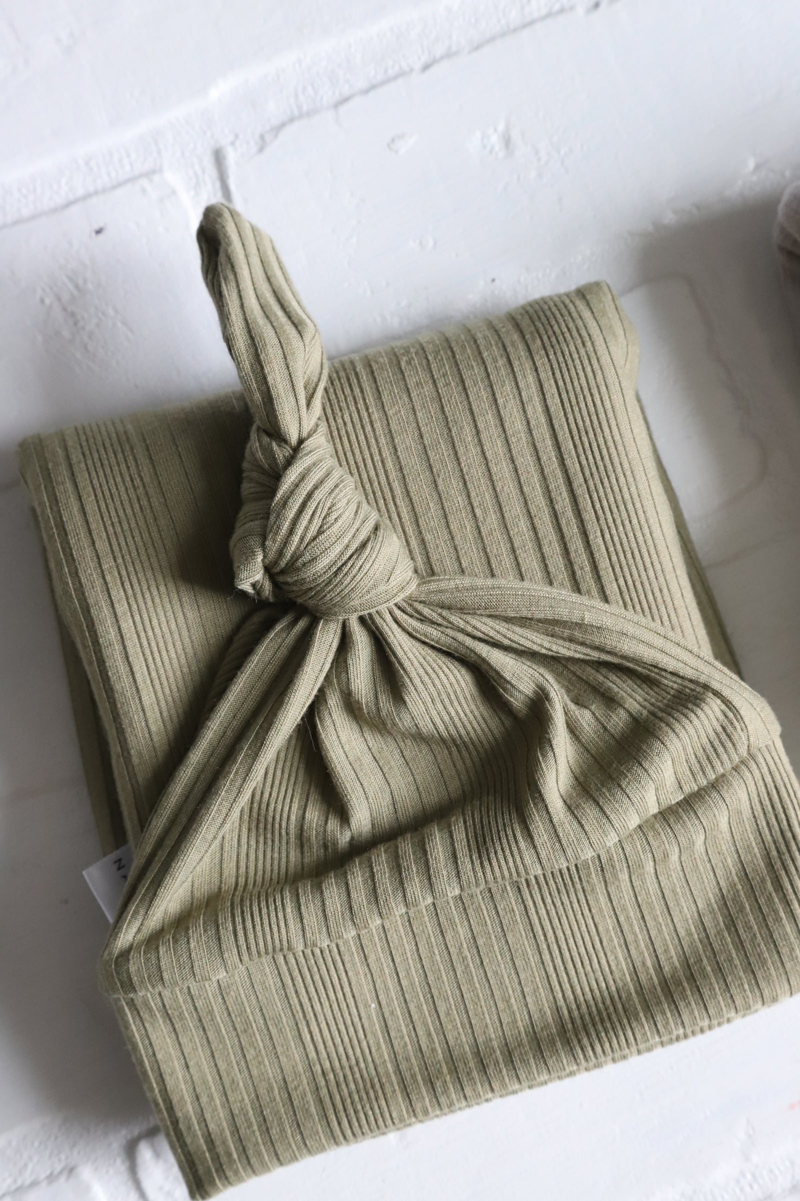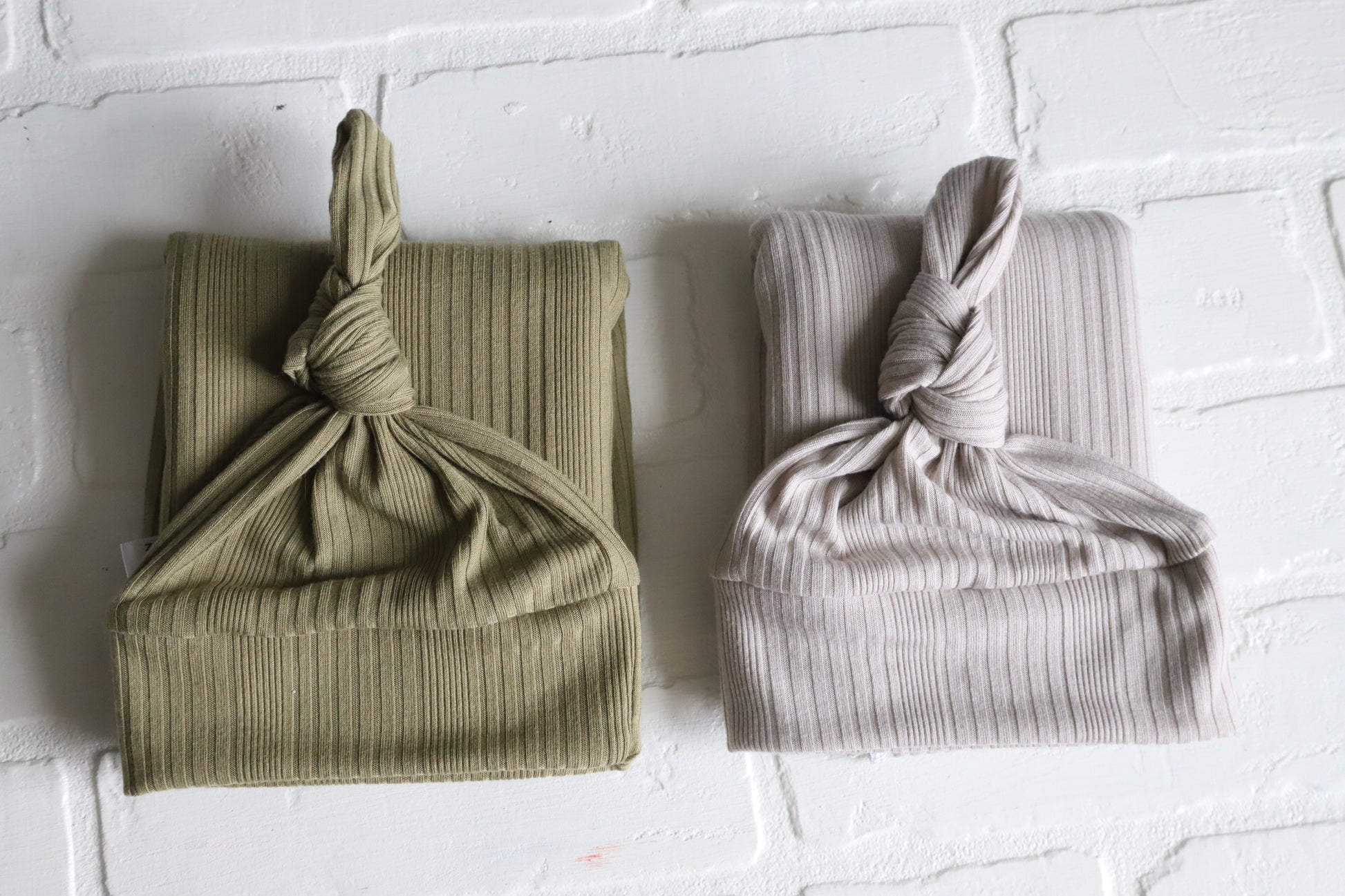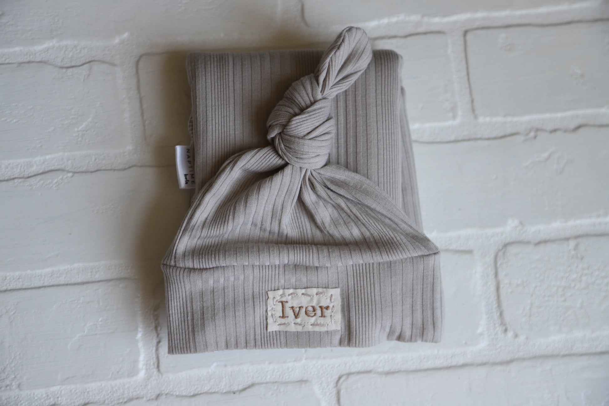 Ribbed Swaddle and Newborn Hat | Taupe or Olive Green
