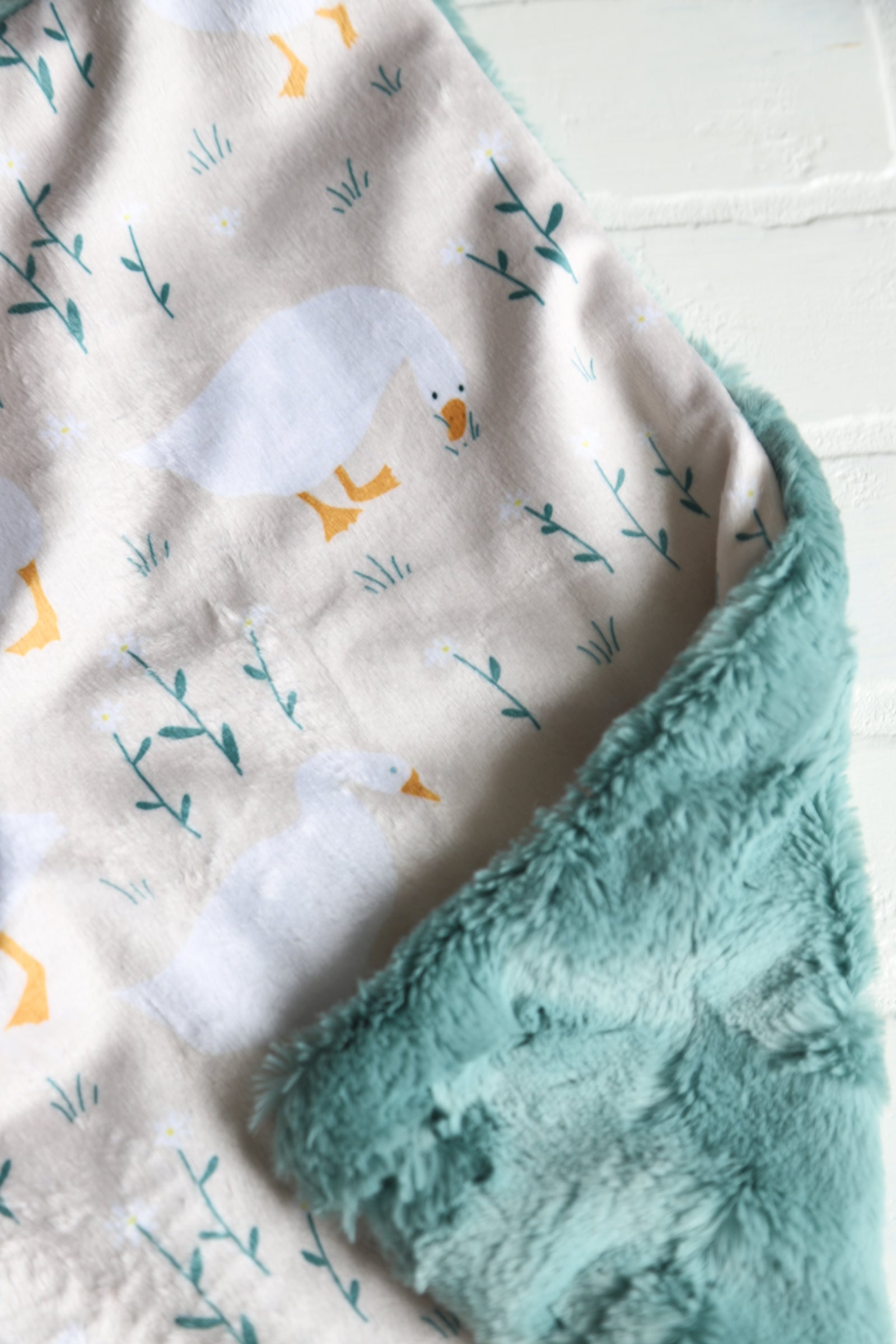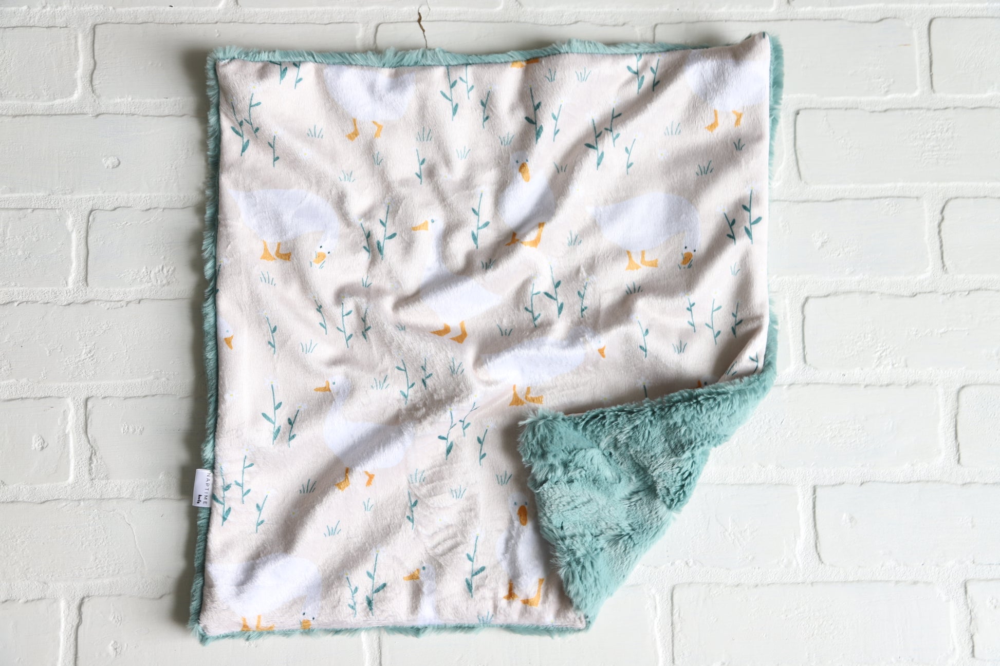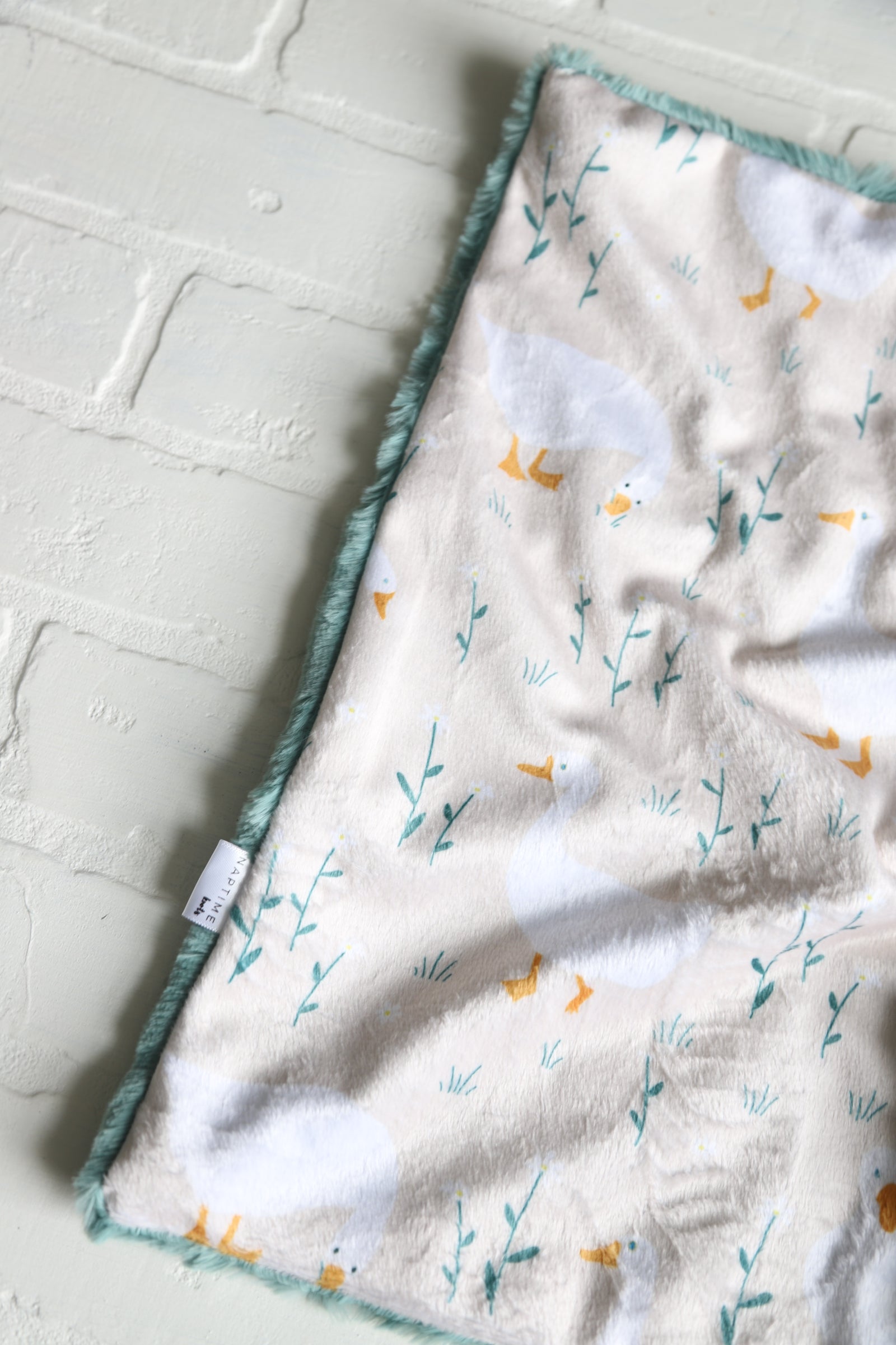 READY TO SHIP lovey featuring sweet geese and flower accents on a beige background