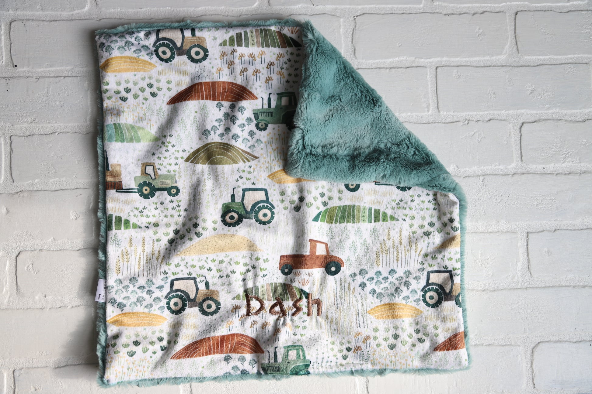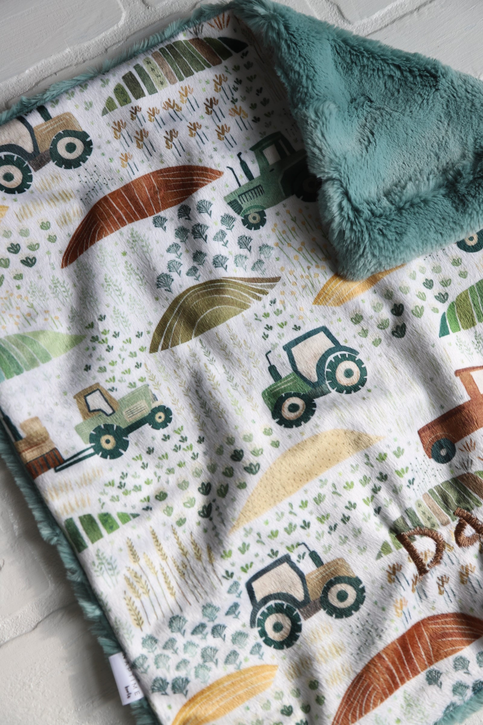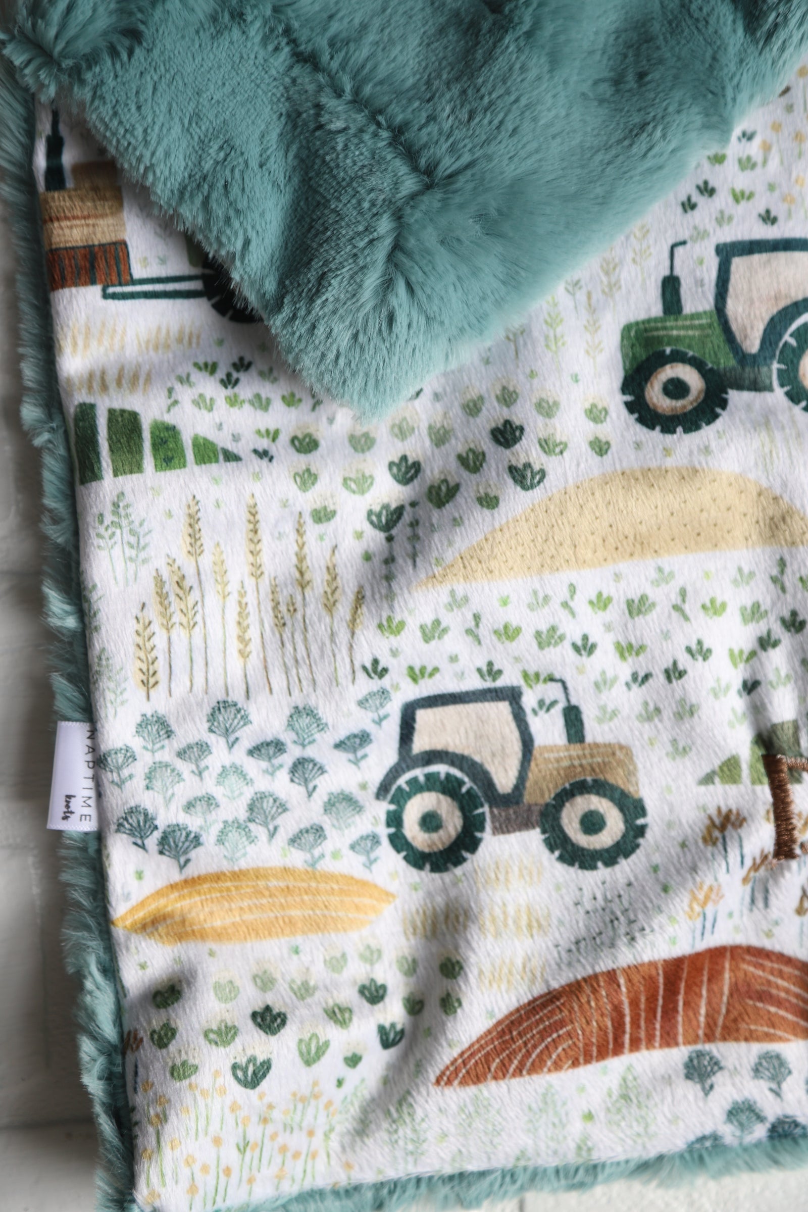 READY TO SHIP lovey featuring some rolling fields and tractors.