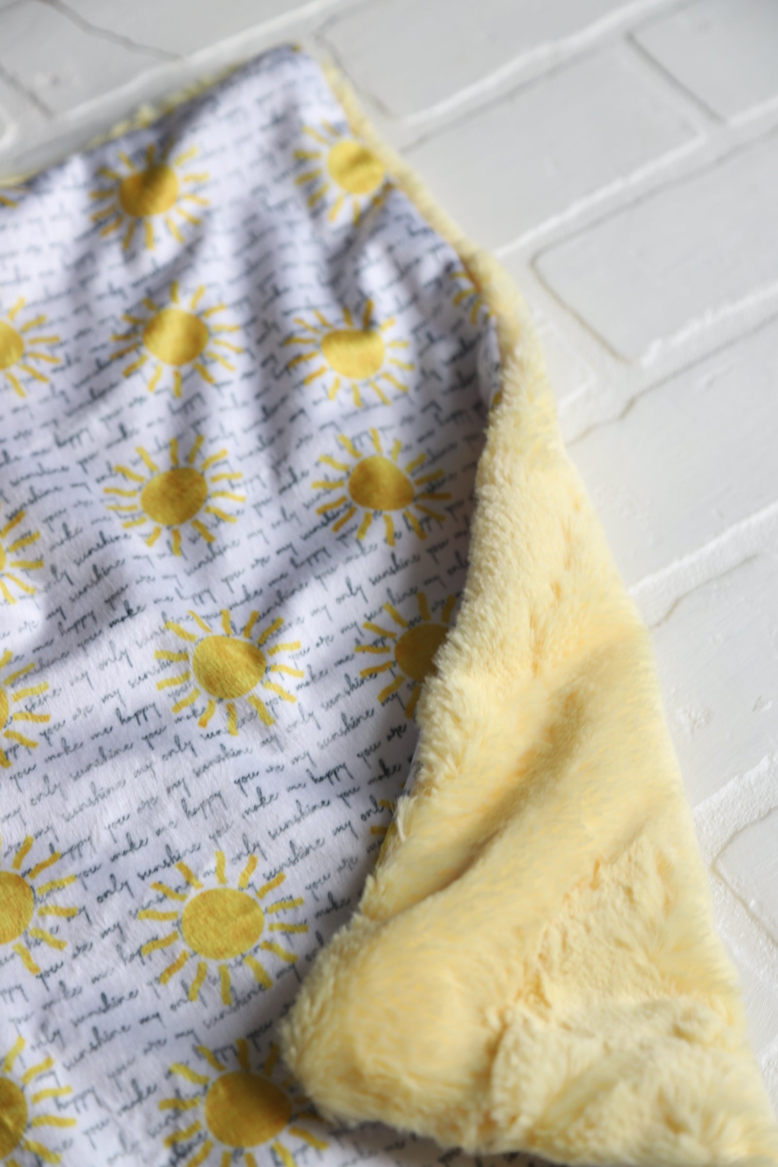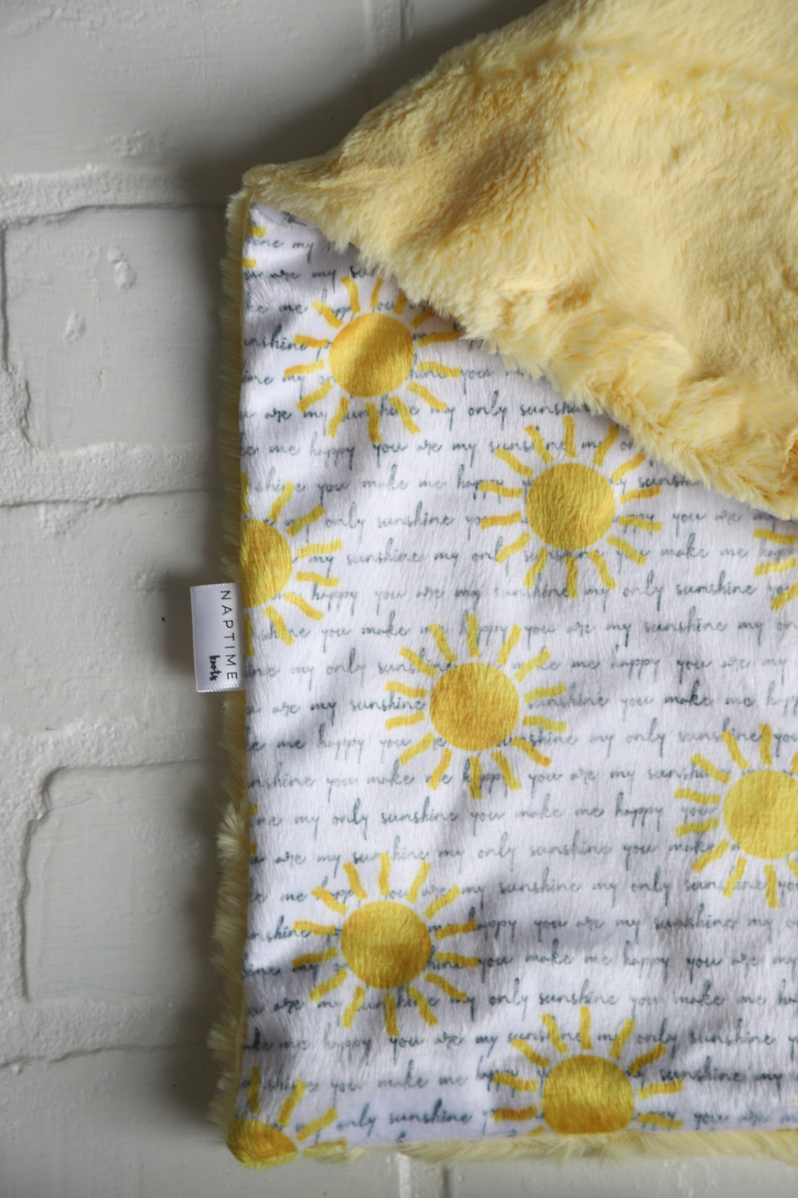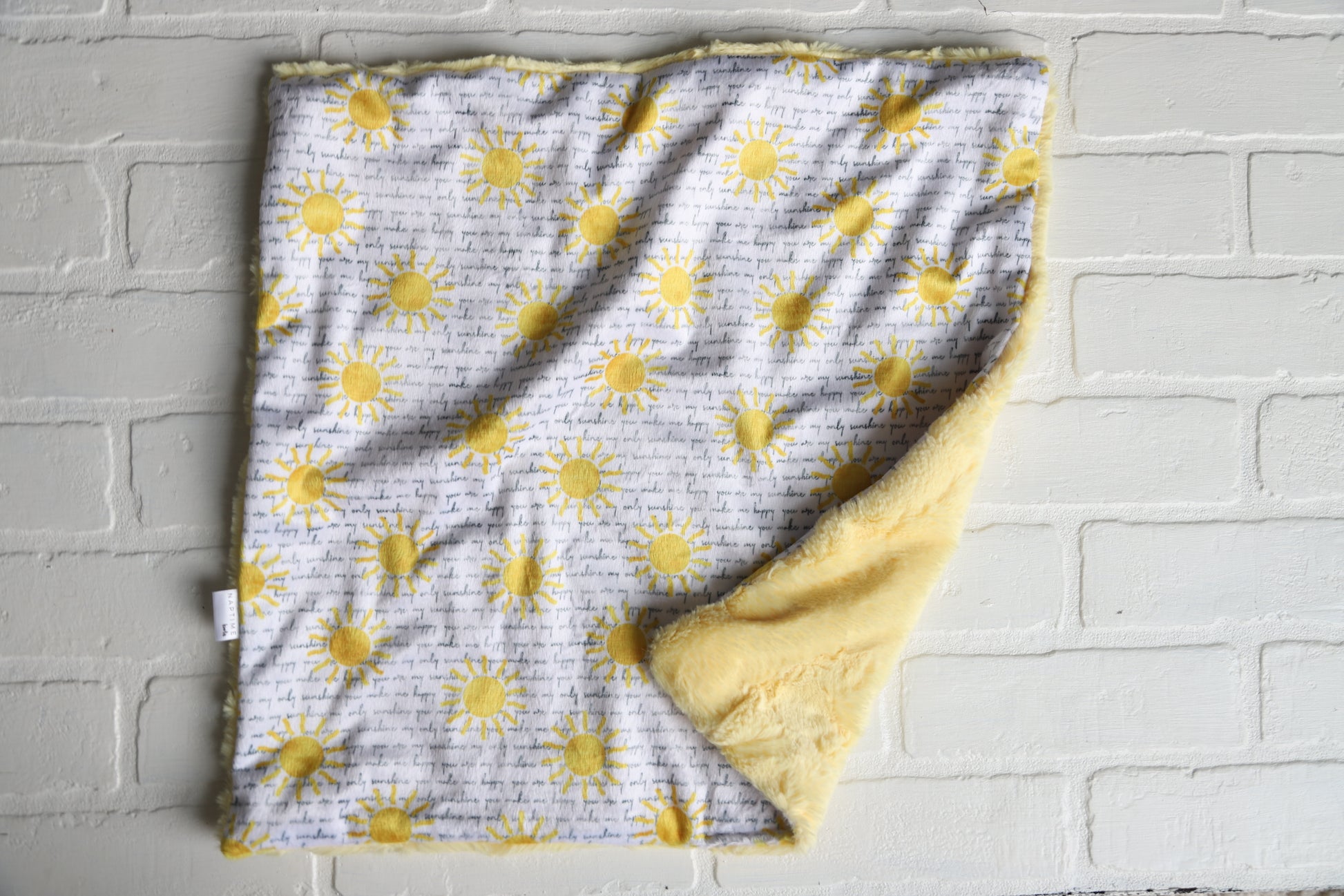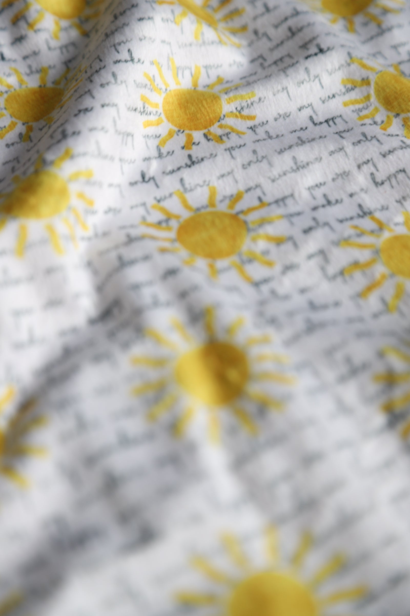 READY TO SHIP lovey featuring bright yellow suns and curvise writing "you are my sunshine"